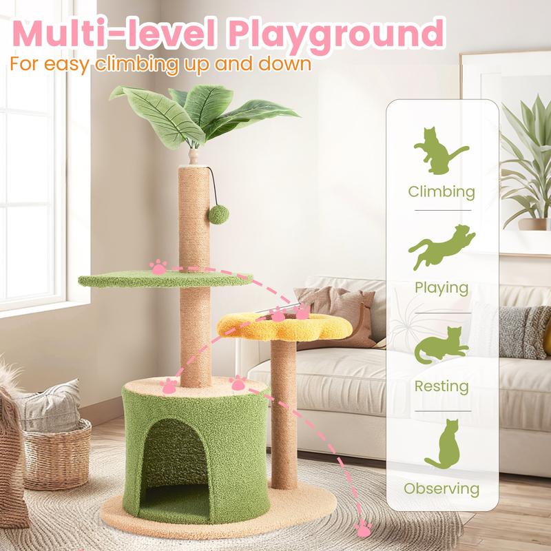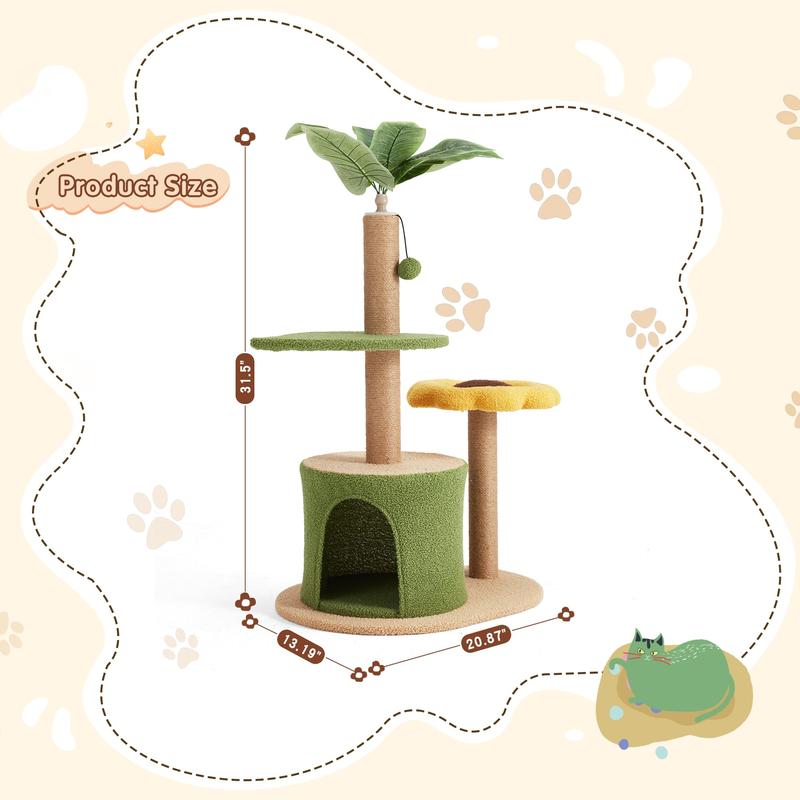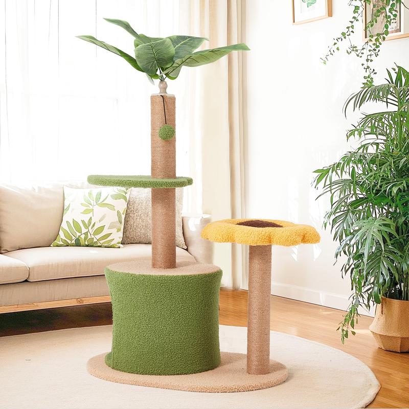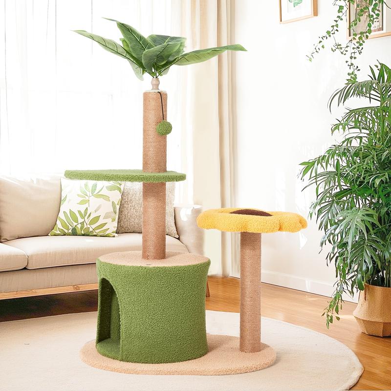 This sunflower cat tree features a spacious condo and multiple leaf-shaped platforms, providing plenty of space for climbing, resting, and playing. It perfectly satisfies your cat’s natural instincts and keeps them active and entertained all day.