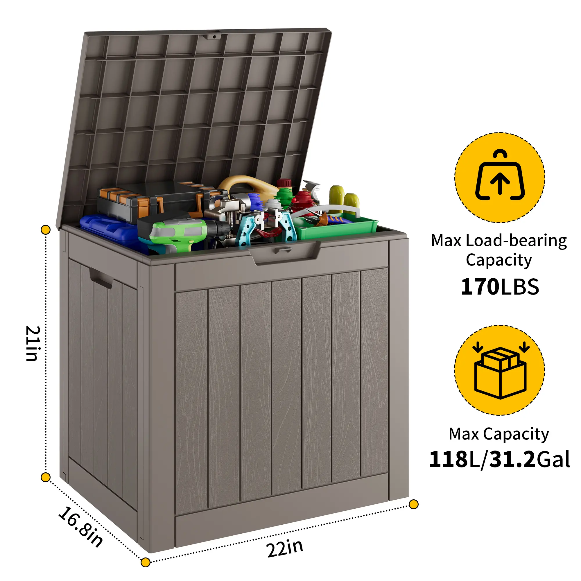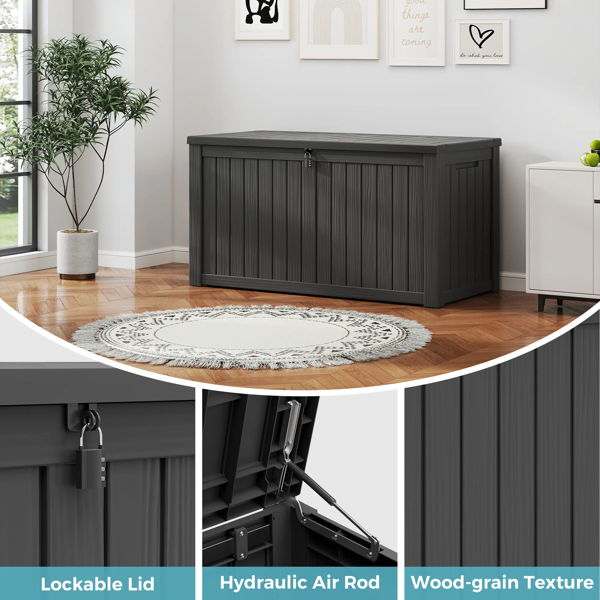 ·All-Weather Durability – Crafted from heavy-duty resin, this storage box is waterproof, UV-resistant, and fade-proof, built to withstand sun, rain, and snow.