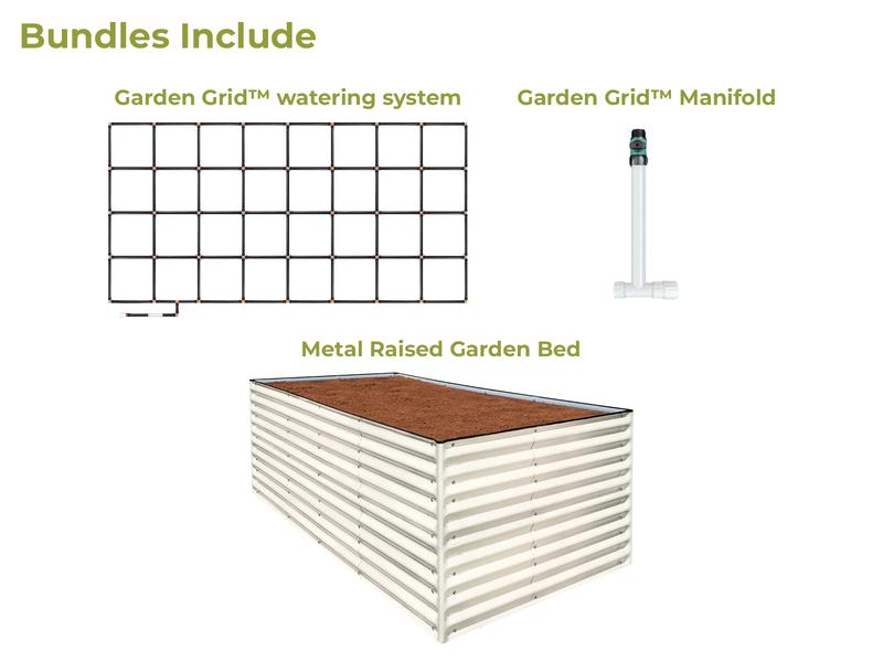 ·All-In-One Convenience – Metal Garden Beds, Garden Grids™, and Manifolds all perfectly designed to fit together. Everything you need for a thriving garden in one bundle.