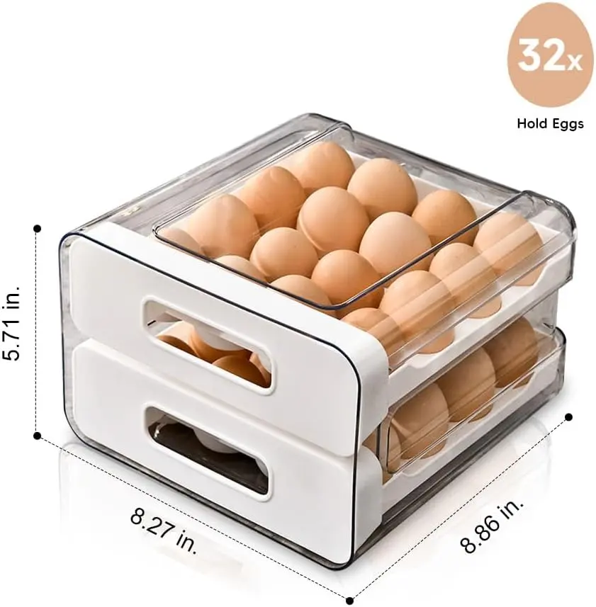 📦 32-Egg, 2-Drawer Stackable Storage Container Holder for Refrigerator