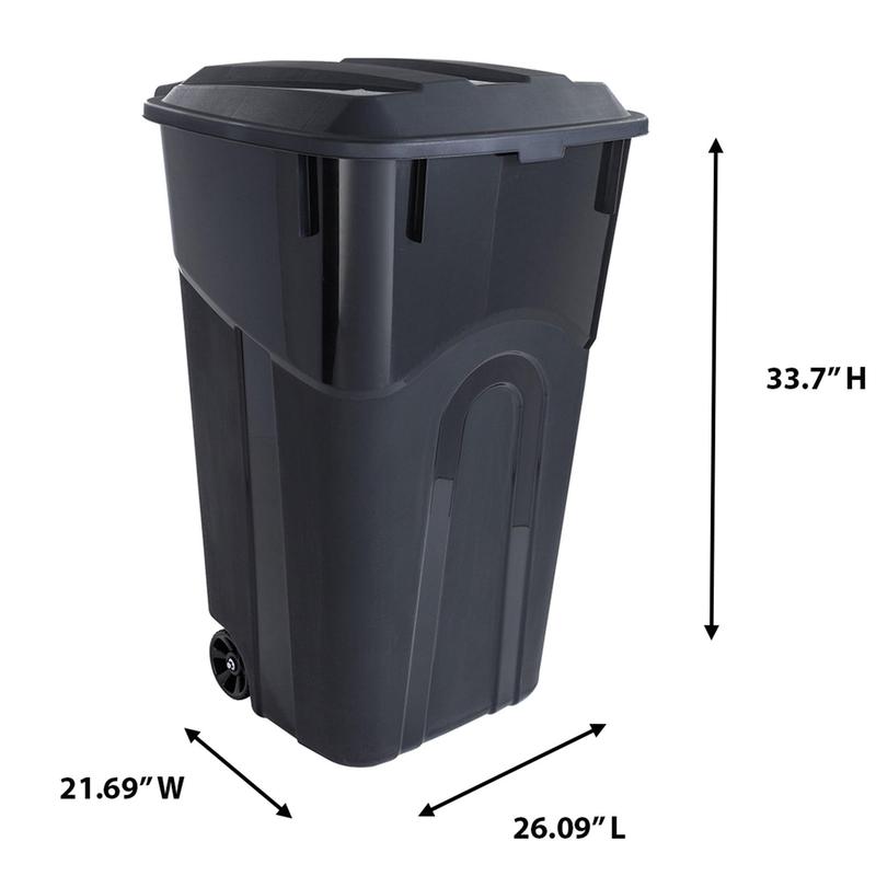 Keep your outdoor spaces tidy with the United Solutions 32 Gallon Trash Can with Lid and Wheels—the perfect solution for any yard, garage, or patio. This heavy-duty trash can is designed to handle tough outdoor conditions, making it a reliable choice for all your waste disposal needs. Whether you're hosting a barbecue, cleaning up after a big event, or just tidying up your backyard, this trash can is built to last and help make your life easier.The garbage can features a secure snap-lock lid, keeping trash contained even on windy days. No more chasing rolling cans around the yard—thanks to the sturdy wheels and heavy-duty handle, you can easily move the 32-gallon can to the curb or from one side of your property to the other. The comfortable, ergonomic handle makes transportation simple and hassle-free, while the rugged wheels ensure smooth movement, even over rough terrain.Constructed from impact-resistant polypropylene, this waste bin is engineered to withstand the elements. This 32 gallon outdoor trash bin can handle extreme weather conditions, from scorching heat to freezing cold, without cracking or breaking. The black color adds a sleek, modern touch, while the durable build ensures it can stand up to the daily demands of outdoor use.Beyond just being a trash receptacle, this can is versatile enough to be used for a variety of tasks around the house. Store pet food, use it as a recycling bin, or even as a storage container for tools or yard supplies. Featuring a large 32-gallon capacity, with this trash can with lid you won’t have to worry about frequent emptying, making it perfect for larger families or for those who entertain regularly.With its heavy-duty construction, secure lid, and easy mobility, the United Solutions 32 Gallon Trash Can with Lid and Wheels is a must-have for anyone looking to keep their outdoor spaces organized and clutter-free.