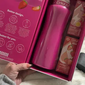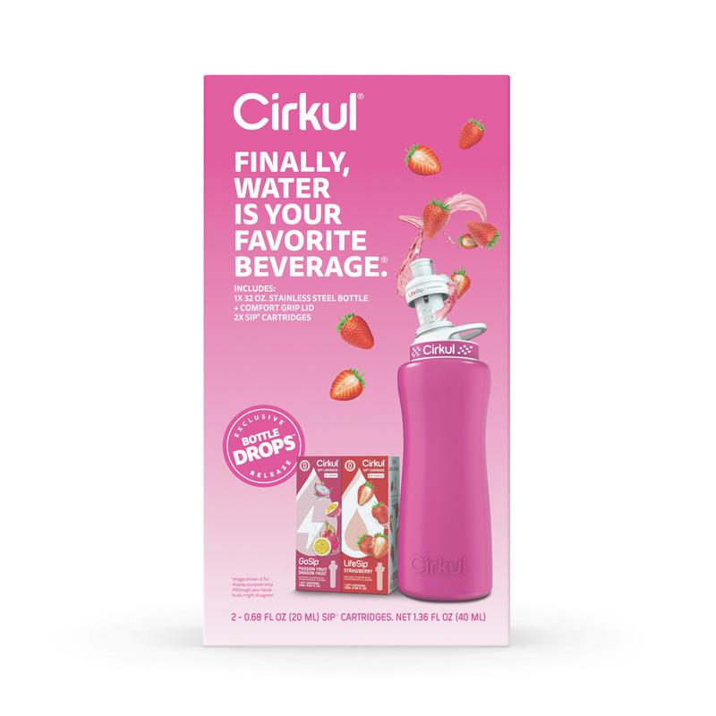 Ready to elevate your water game? This 32oz. Hot Pink Gold Stainless Steel Bottle Starter Kit is your perfect introduction to Cirkul. It includes an innovative water bottle and 2 flavor cartridges: LifeSip Strawberry and GoSip Passion Fruit Dragon Fruit. No sugar, zero calories, and no artificial colors. Enjoy personalized, delicious hydration!
