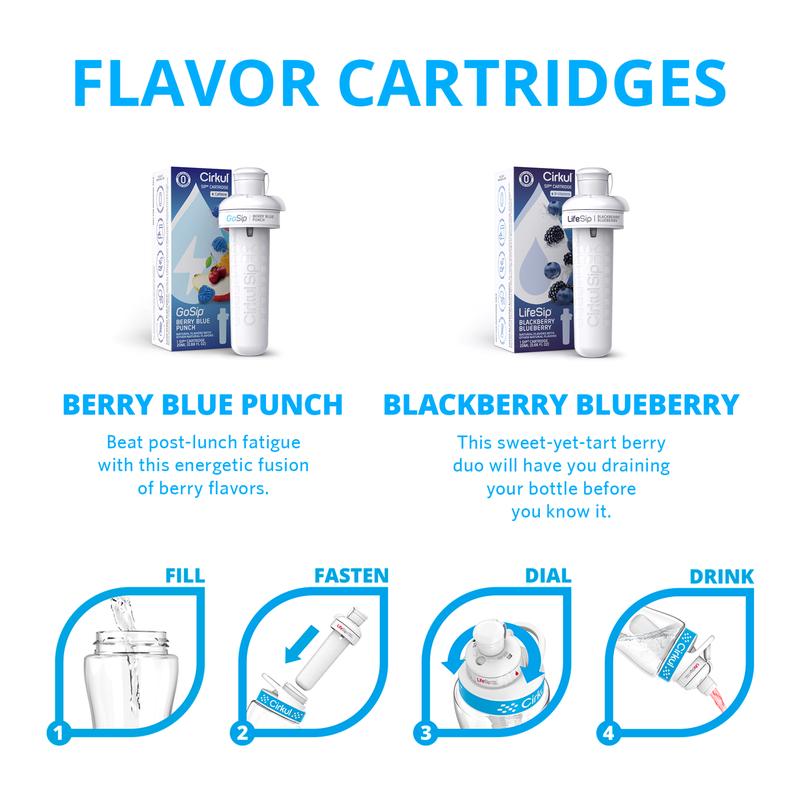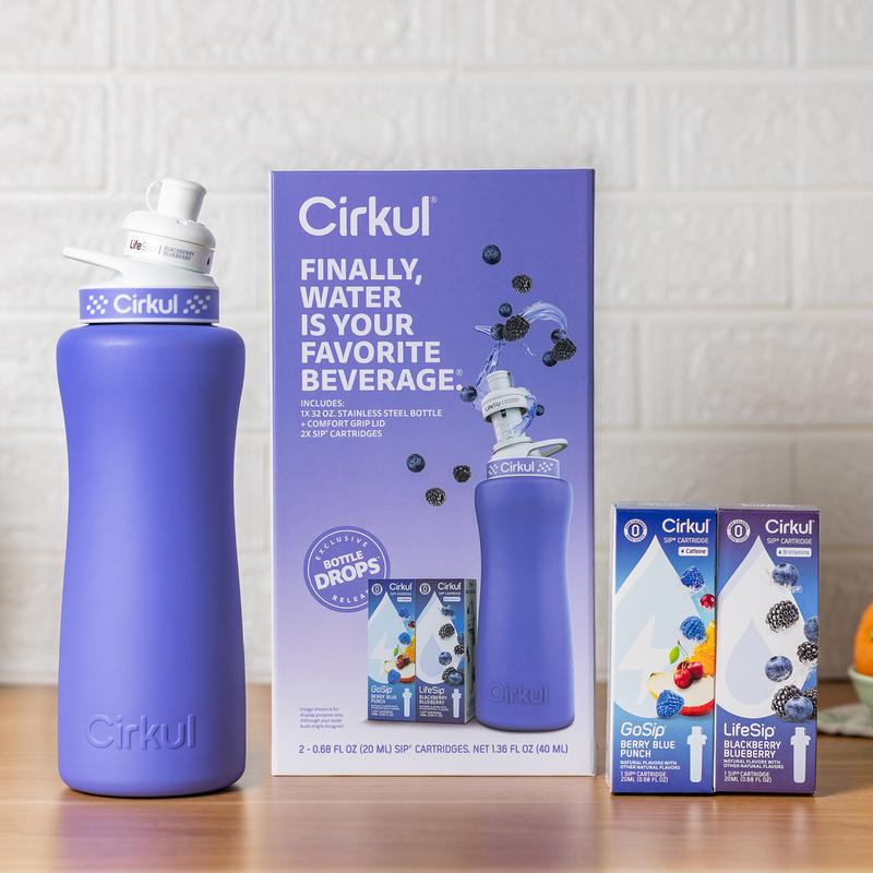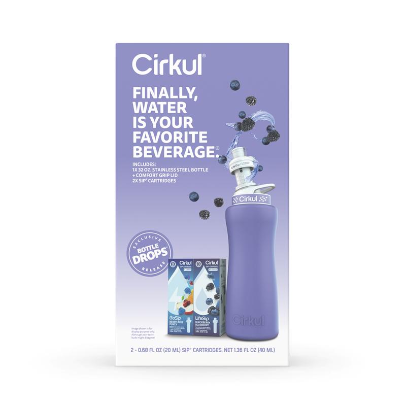 Ready to elevate your water game? This 32oz. Periwinkle Stainless Steel Bottle Starter Kit is your perfect introduction to Cirkul. It includes an innovative water bottle and 2 flavor cartridges: LifeSip Blackberry Blueberry and GoSip Berry Blue Punch. No sugar, zero calories, and no artificial colors. Enjoy personalized, delicious hydration!