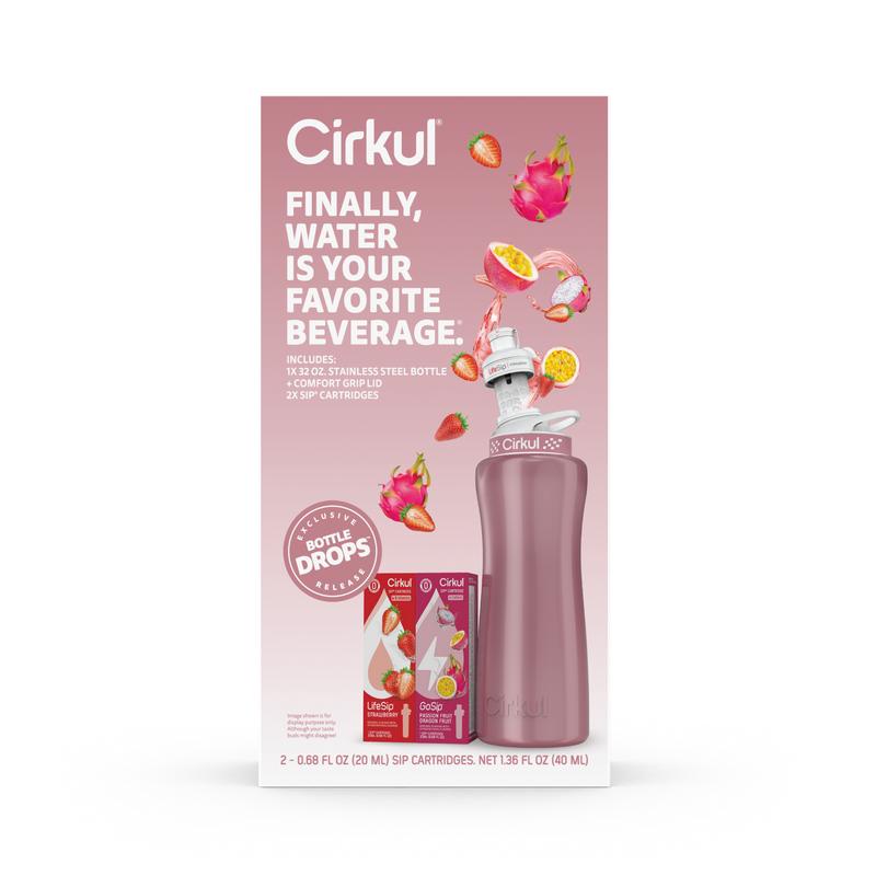 Ready to elevate your water game? This 32oz. Rose Gold Stainless Steel Bottle Starter Kit is your perfect introduction to Cirkul. It includes an innovative water bottle and 2 flavor cartridges: LifeSip Strawberry and GoSip Passion Fruit Dragon Fruit. No sugar, zero calories, and no artificial colors. Enjoy personalized, delicious hydration!