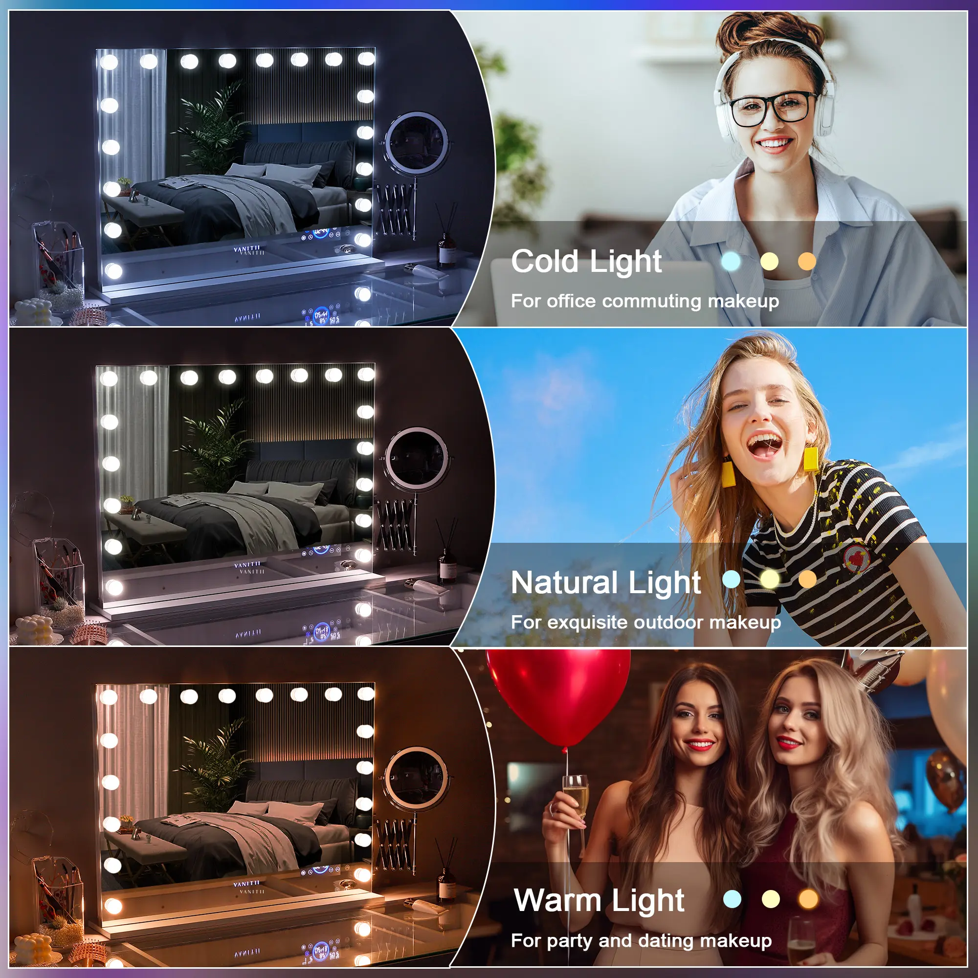 ·Soft white for everyday glam, warm for golden-hour glow, cool blue for TikTok vibes — your mirror, your atmosphere.