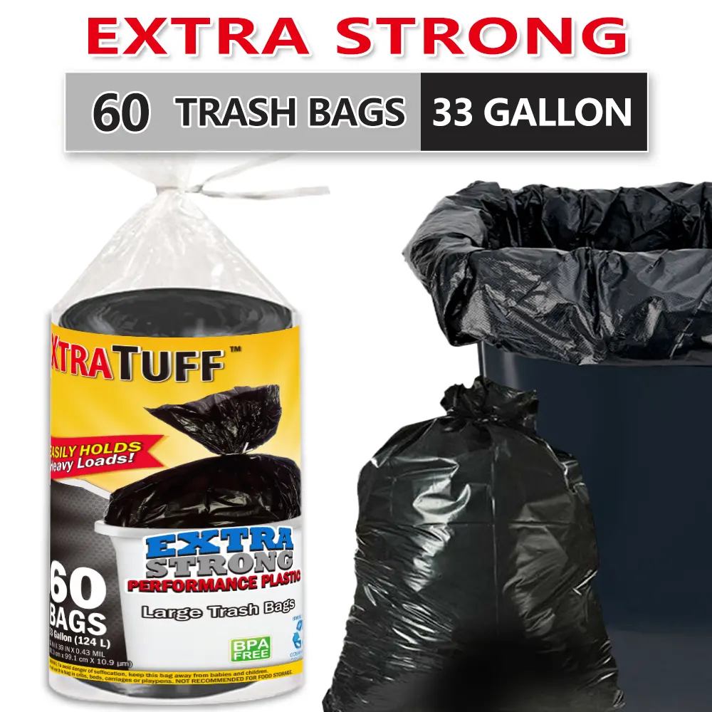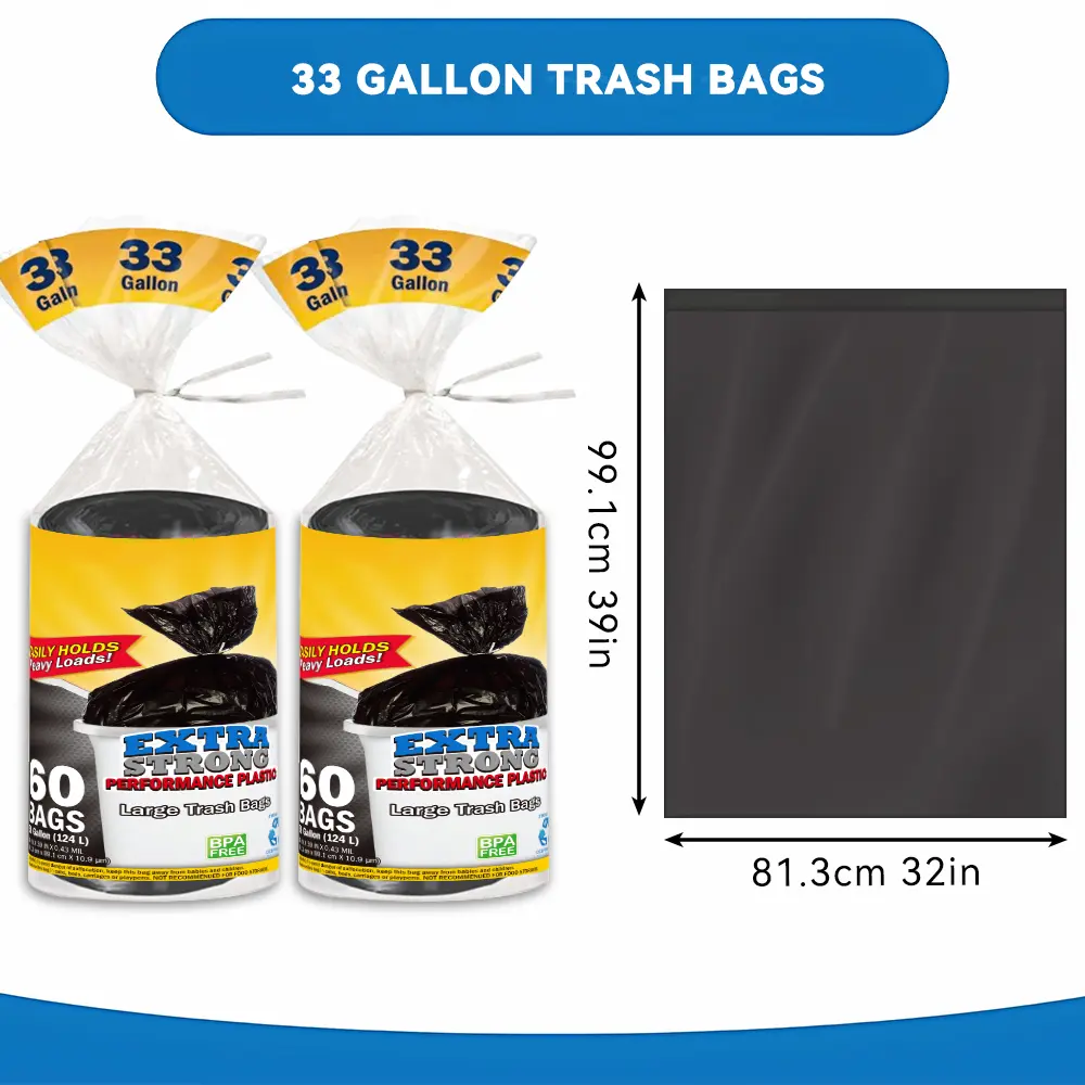 ✨ 60 Bags, 33 Gallon Capacity: These disposable large garbage bags are perfect for industrial, garden, home, and commercial use. 🏠🌳