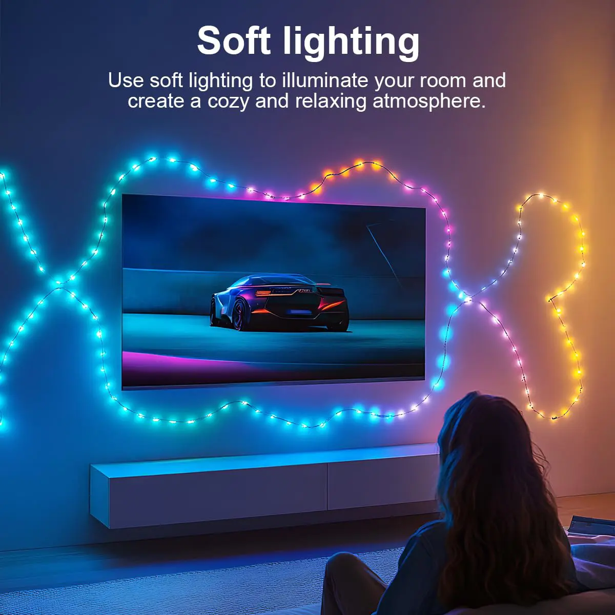 ·【High Quality Materials】:The colorful lights are designed with PVC coating and high waterproof rating (IP65), -20 °C cold resistance, durable materials, both durable and safe, using fully glued lamp beads, not easy to knot, not easy to break, perfect for indoor and outdoor use. (Remote is not waterproof).