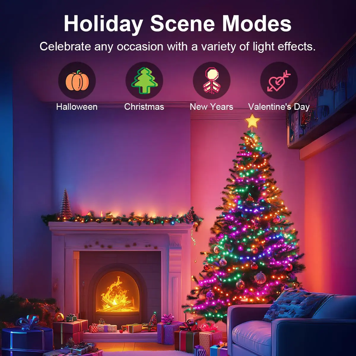 ·【Multiple Dynamic Modes】: The multi-functional preset modes of the holiday illuminations can meet various needs for any occasion. You can choose the corresponding mode from different use scenes such as tree, yard, garden, fence, etc., which can more accurately provide you with diversified light celebrations.