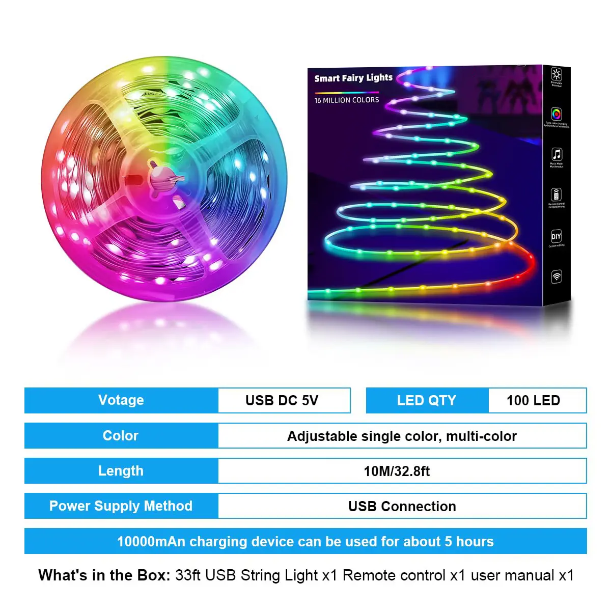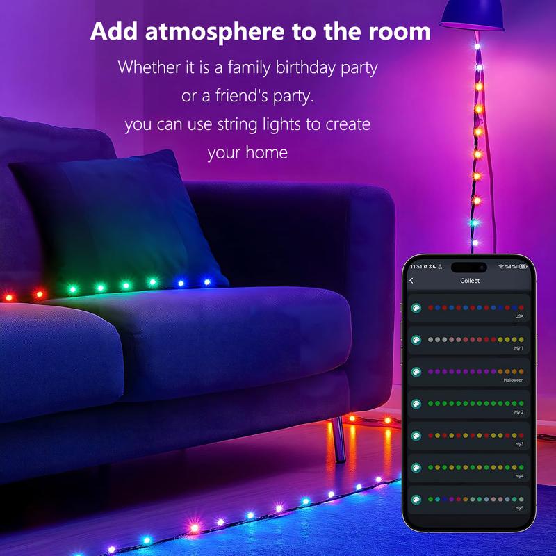 ·【Customize Festival Atmosphere】: 33 Ft of fairy lights equipped with 100 LED lights, supporting independent selection of each LED light bead from 16 million colors, allowing you to choose the perfect color to match various holiday themes (such as Halloween, Christmas, etc.); it is the ideal decoration for holidays, bedrooms, dormitories, gardens, fences, living rooms, classrooms, and parties.