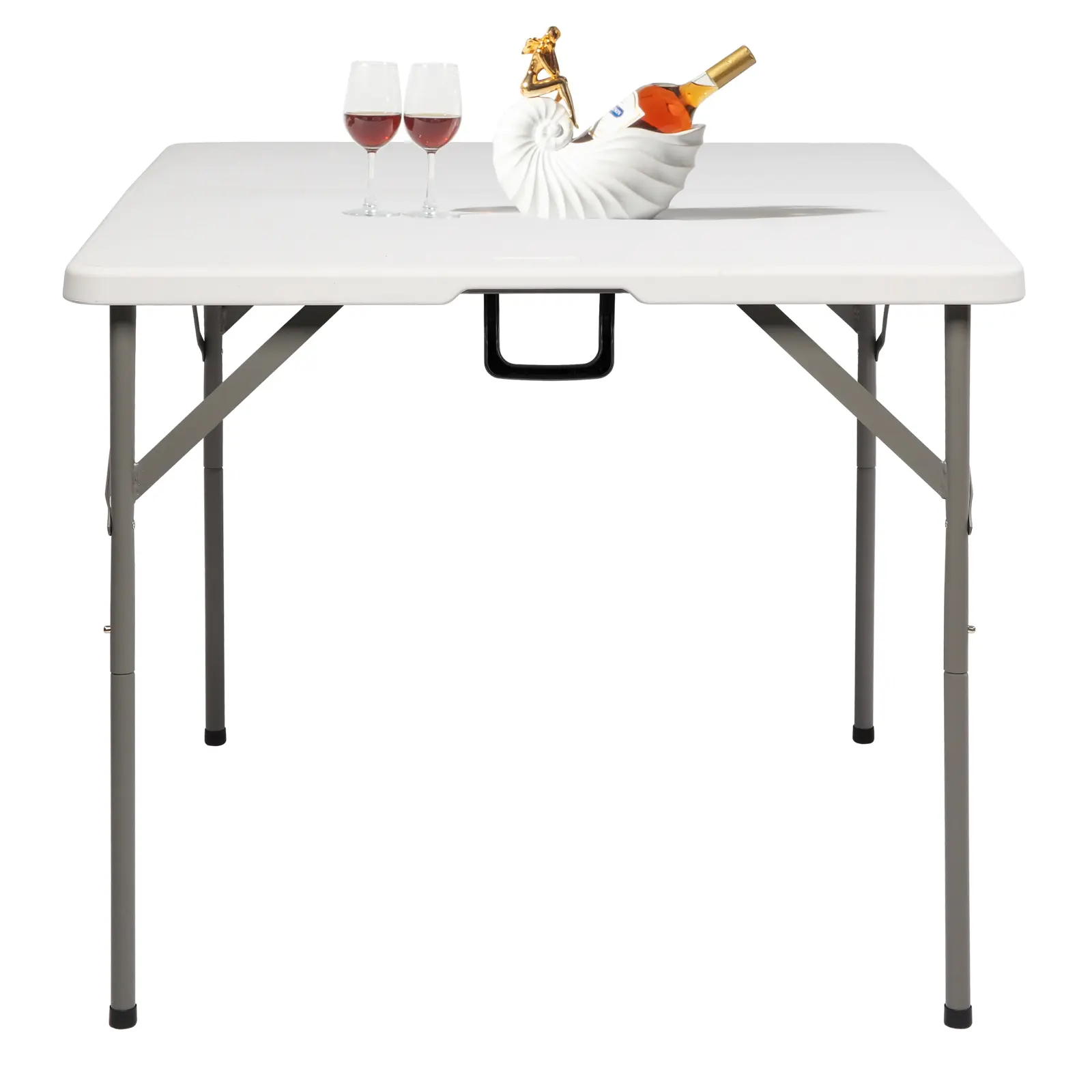 34" Fold in Half Square Table, Bi-Folding Commercial Table, Portable Plastic Dining Card Table for Kitchen or Outdoor Party Wedding Event, White
