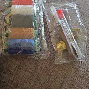 Needles are stronger than the ones I typically buy. I like the variety of lengths. Needle threader works great. The thread is just regular thread, but a good amount for the price.