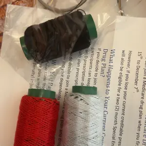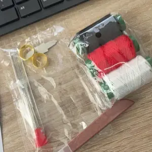 Las agujas bien y los demás accesorios pero esos carretes de hilo solo tienen un par de vueltas de hilo mejor no pongan hilo porque eso no alcanza para nada