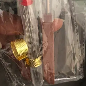 Everything looks ok. The thimble can be adjusted if you have bigger fingers. The thread is not as much as pics show. The bobbin is odd shaped so it appears to be more thread but it is deceiving. The needles look strong.