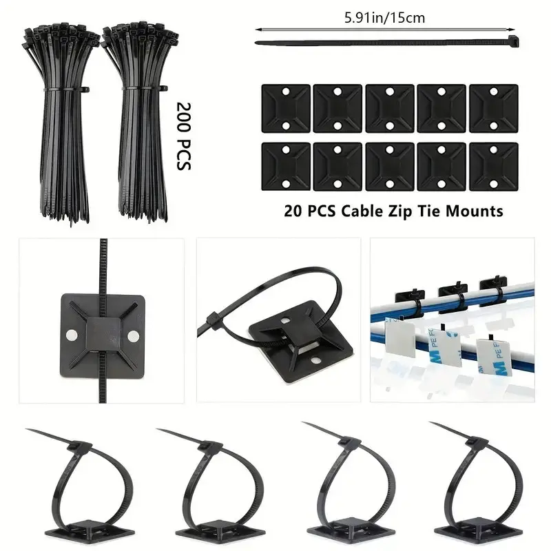 【Sticky Wall Ties】: Comes with 20 sticky wall cable ties, allowing for easy attachment to various surfaces without damage.