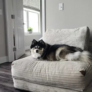 I love this mini size couch. I fold it up and unfold it when I want to lay on the floor. I work from home so it’s nice to have something to lay on. I wish it was bigger then it would be an actual couch lol I’m 5’6 and it fits me perfect. It’s perfect for a guess or sleep over since it can fold up. My dog loves it 🫠
