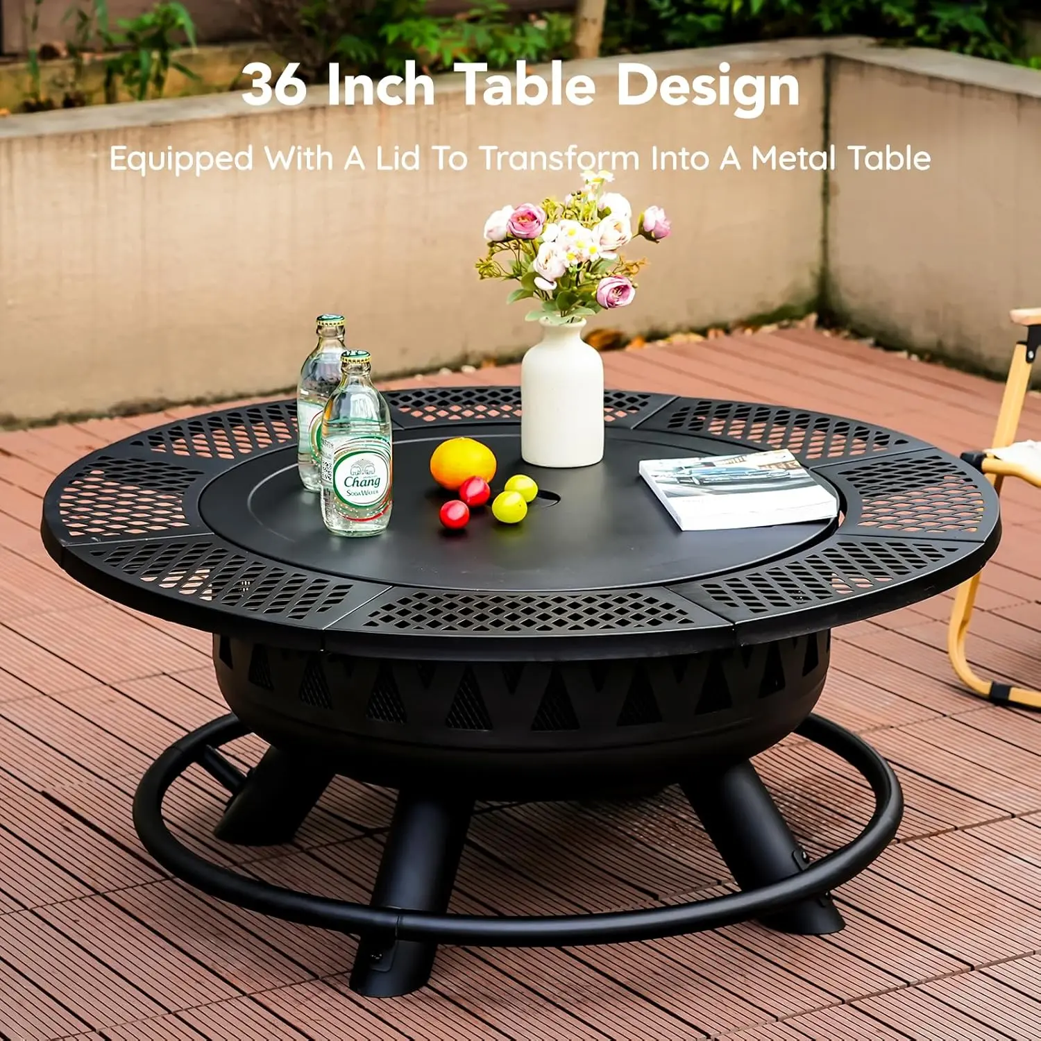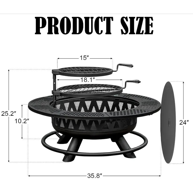 Product arrived damaged with bent parts and a hole in fire bowl. Easy to put together but way thinner metal than expected. Product would be a 4 or 5 star if not damaged straight out of the box.
