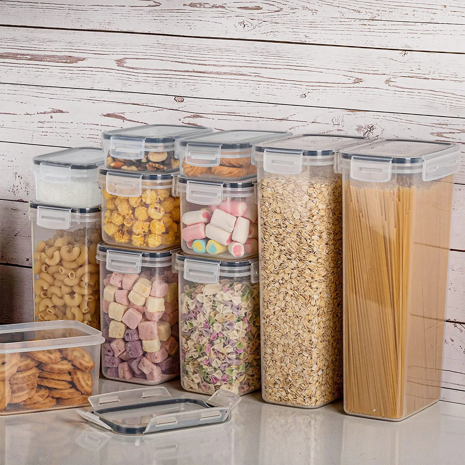 ✨ Imagine a tidy kitchen where everything is neatly arranged. This set helps you achieve that. Stackable and space-saving, these containers maximize cabinet space. Get your items quickly without a mess. Perfect for any kitchen or pantry, these containers ensure efficiency and organization.