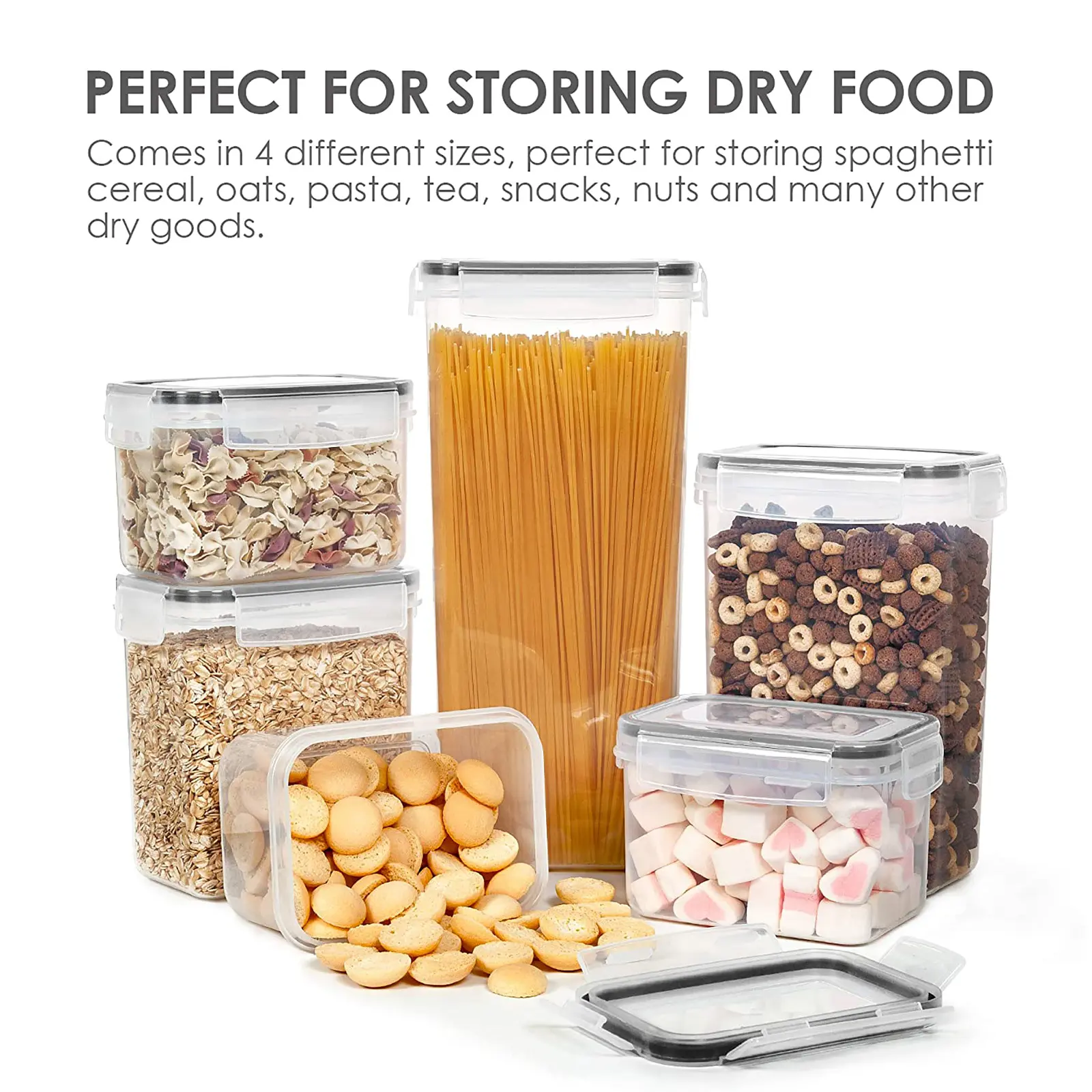 🌟 Our set includes 6 different sizes, fitting various storage needs. Store spaghetti, baking supplies, cereal, flour, sugar, oats, pasta, rice, coffee, tea, snacks, and nuts. The 6 size combinations cater to diverse storage requirements, making it versatile for all your dry goods needs.
