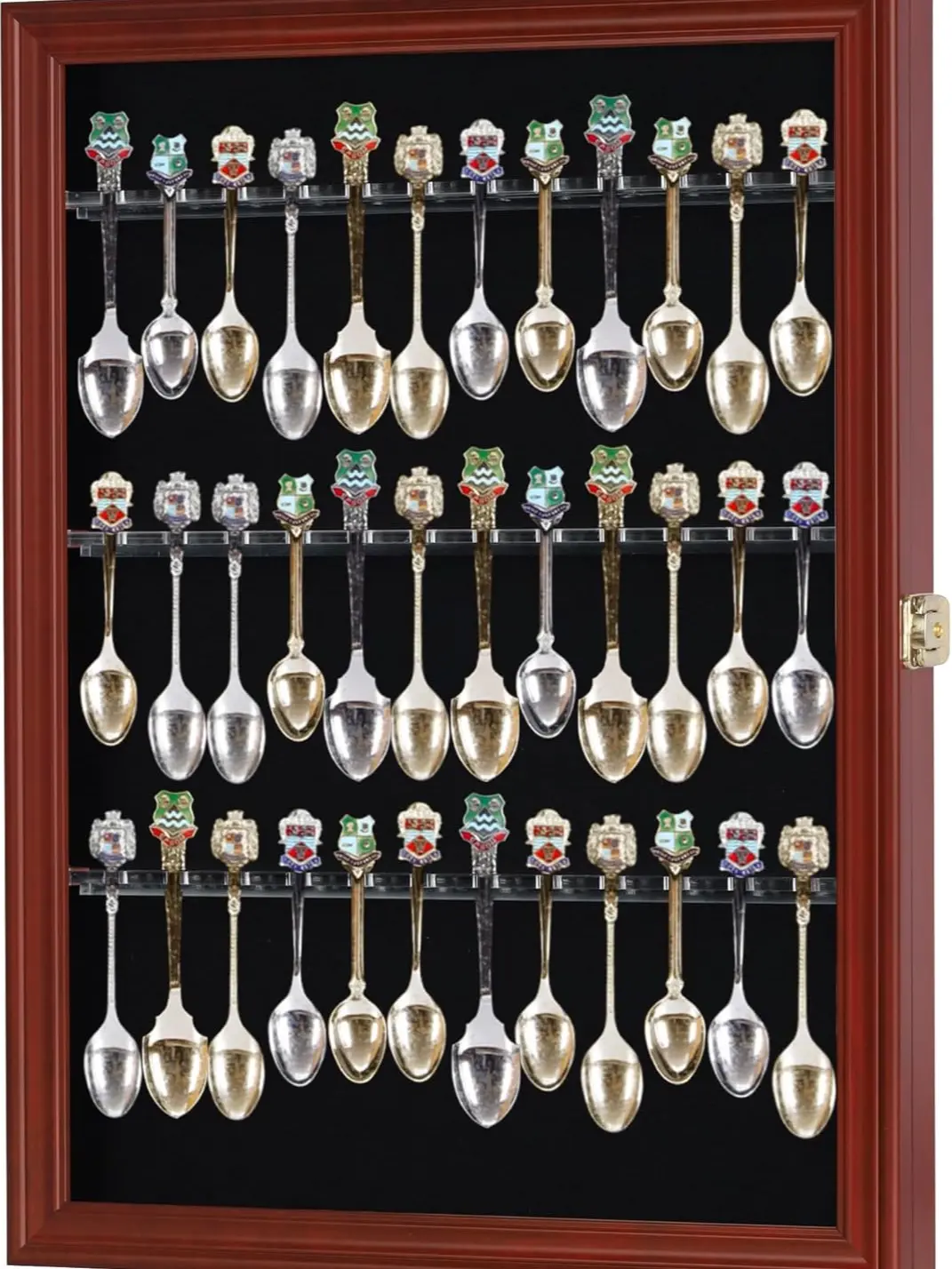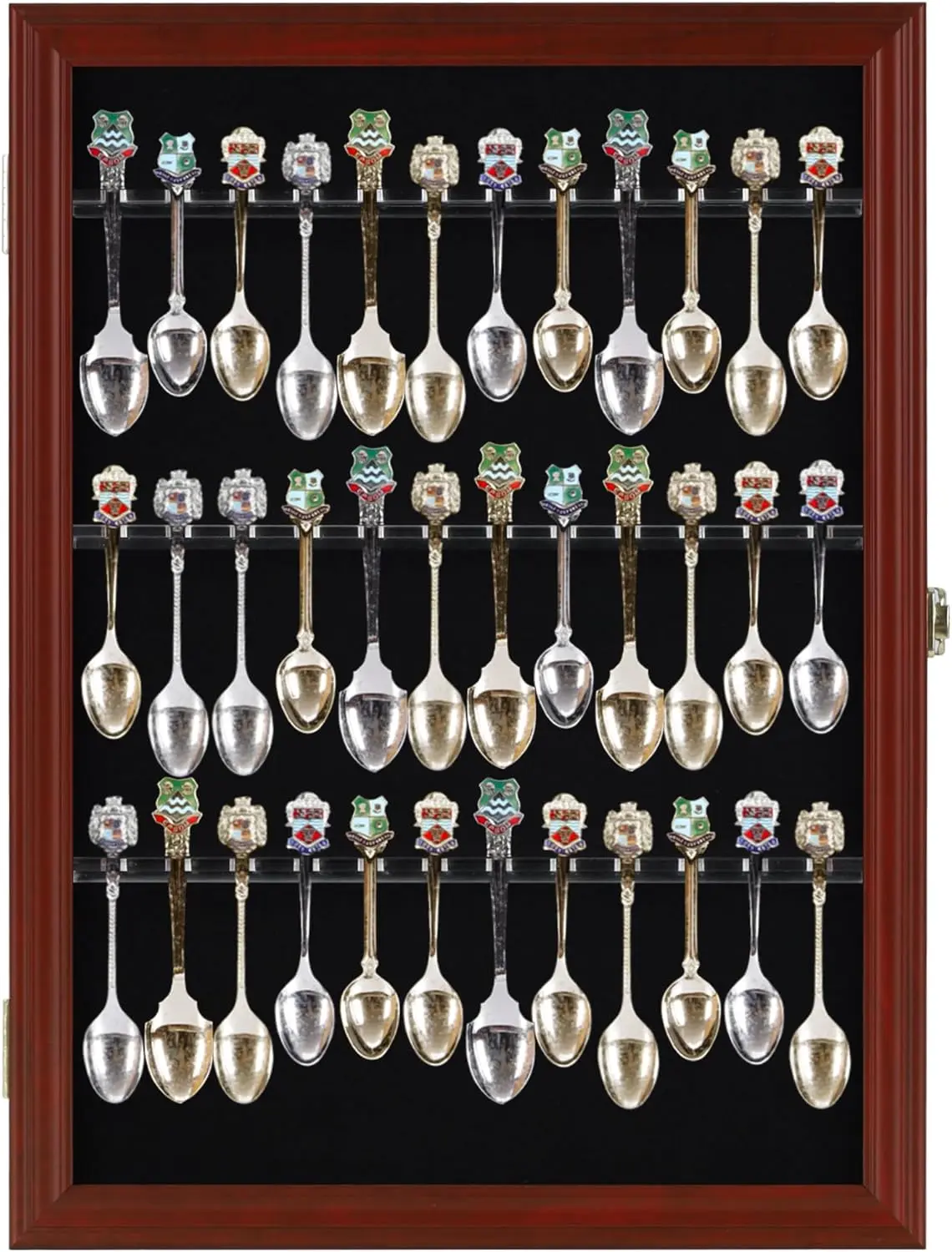 36 Spoon Display Case Cabinet Holder Rack Shadow Box with Lockable Door