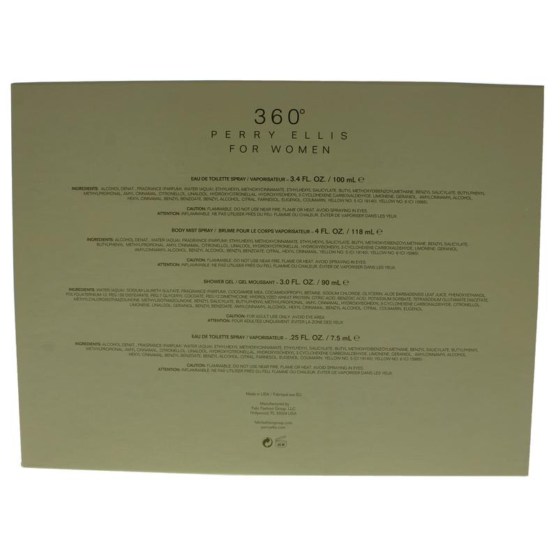 5. 360 by Perry Ellis for Women - 4 Pc Gift Set 3.4oz EDT Spray, 4oz Body Mist Spray, 3oz Shower Gel, 0.25oz EDT Spray