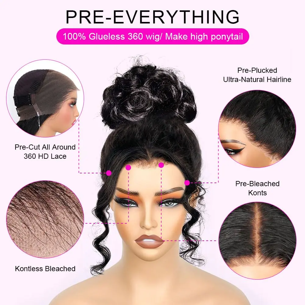 360 Lace Front Wigs Human Hair Body Wave Wigs, Pre Cut Lace, Pre Bleacked Knots