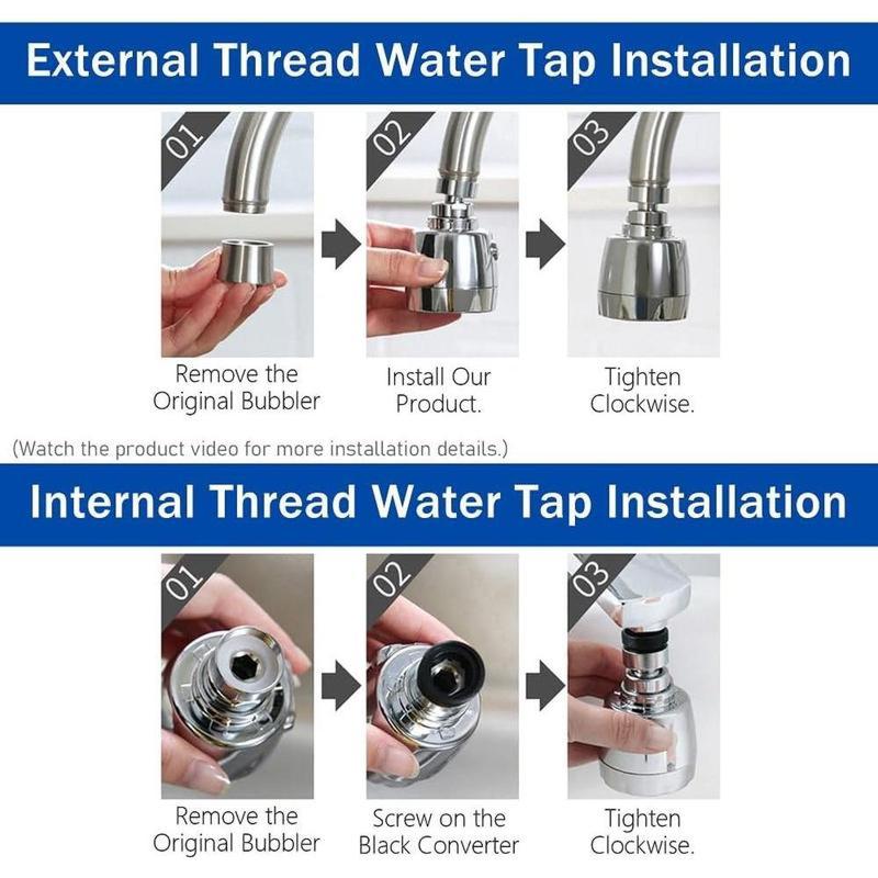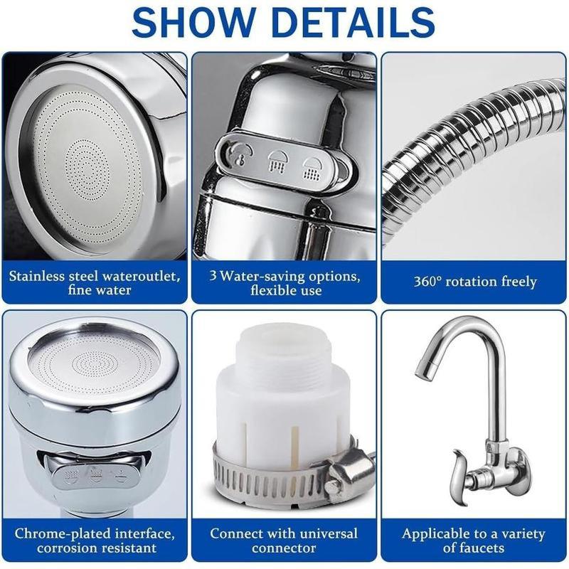 5. Kitchen Faucet Sprayer Attachment 360 ° Rotatable Anti-Splash Water Saving Tap Head with Universal Adapter Set Stainless Steel Extender for Sink Accessories Tools.