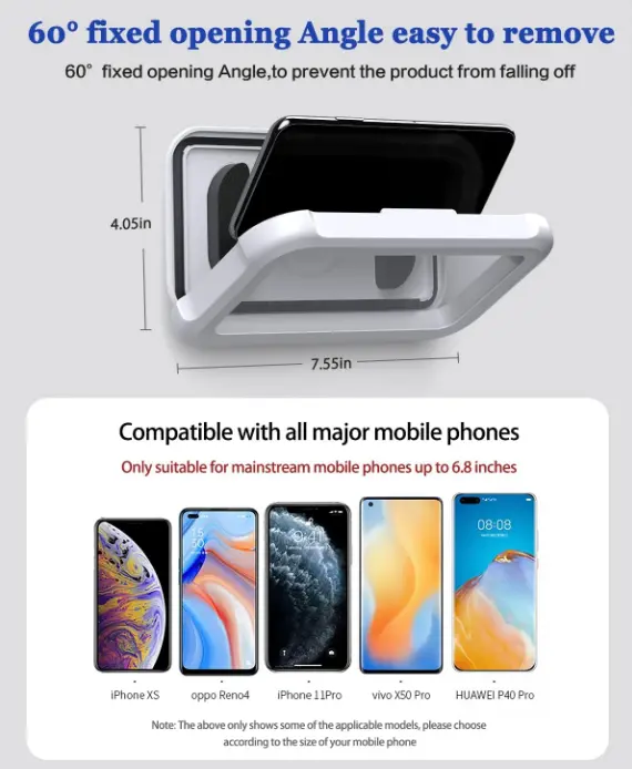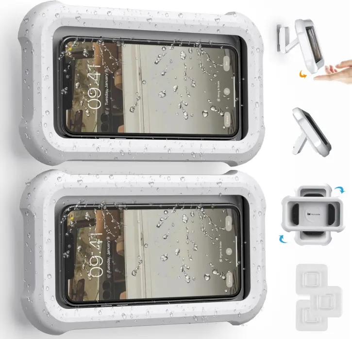 Works good, they gave a total of 4 adhesive wall attachments so that you can replace it in another shower, Which is good so that you can have one for horizontal and one for vertical. I definitely would buy again, works great with my iPhone 16.