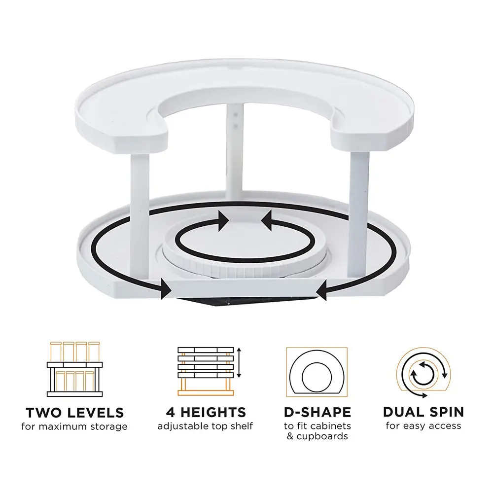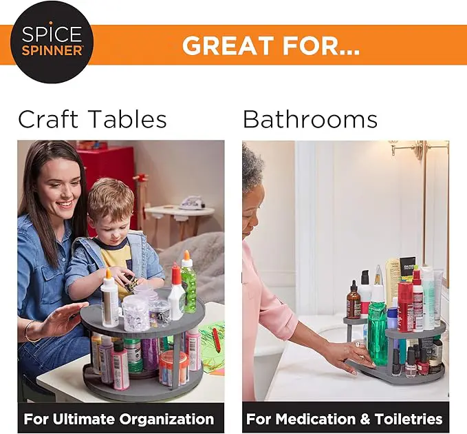 Dual Rotating Turntable - The built-in rotating design allows you to easily spin and access all seasonings within reach. It keeps all items clearly visible and can hold taller bottles as well. Maximizes unused space in cabinets while keeping everything organized and in clear view!