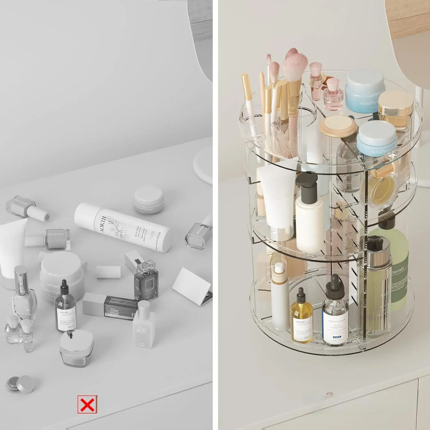 360° Rotating Makeup Organizer – All-in-One Vanity Storage
