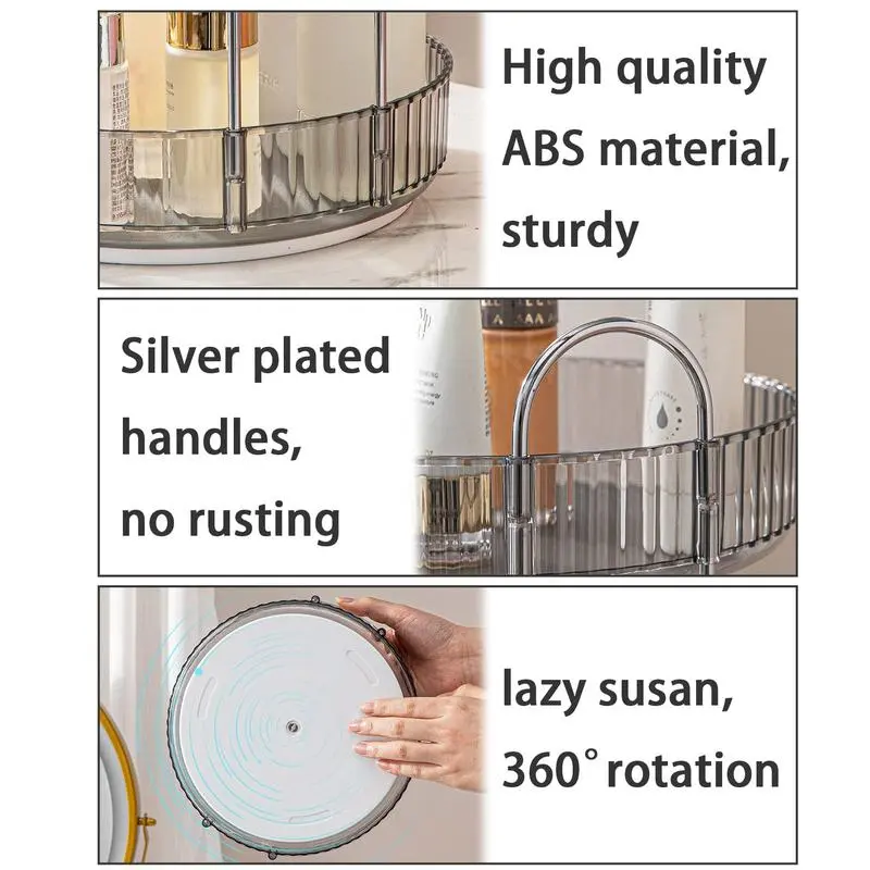 【360°Rotating Design】Unlike conventional organizers, this innovative rotating organizer boasts a seamless 360-degree rotation capability. With just a gentle rotation, you can effortlessly access all your makeup essentials, making the selection . The perfume organizer's high tray edge are thoughtfully designed to prevent any messy spills.