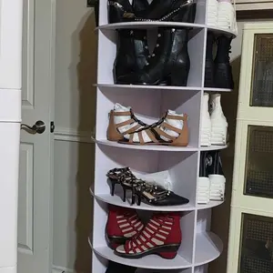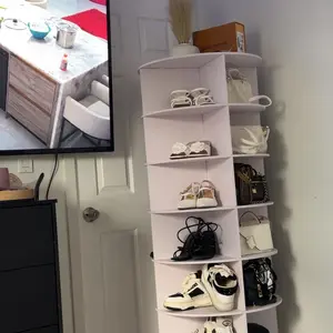 This is a well made rotating stand worth every penny I purchased 2, takes up little space but holds a lot of shoes, better than those tennis shoe boxes