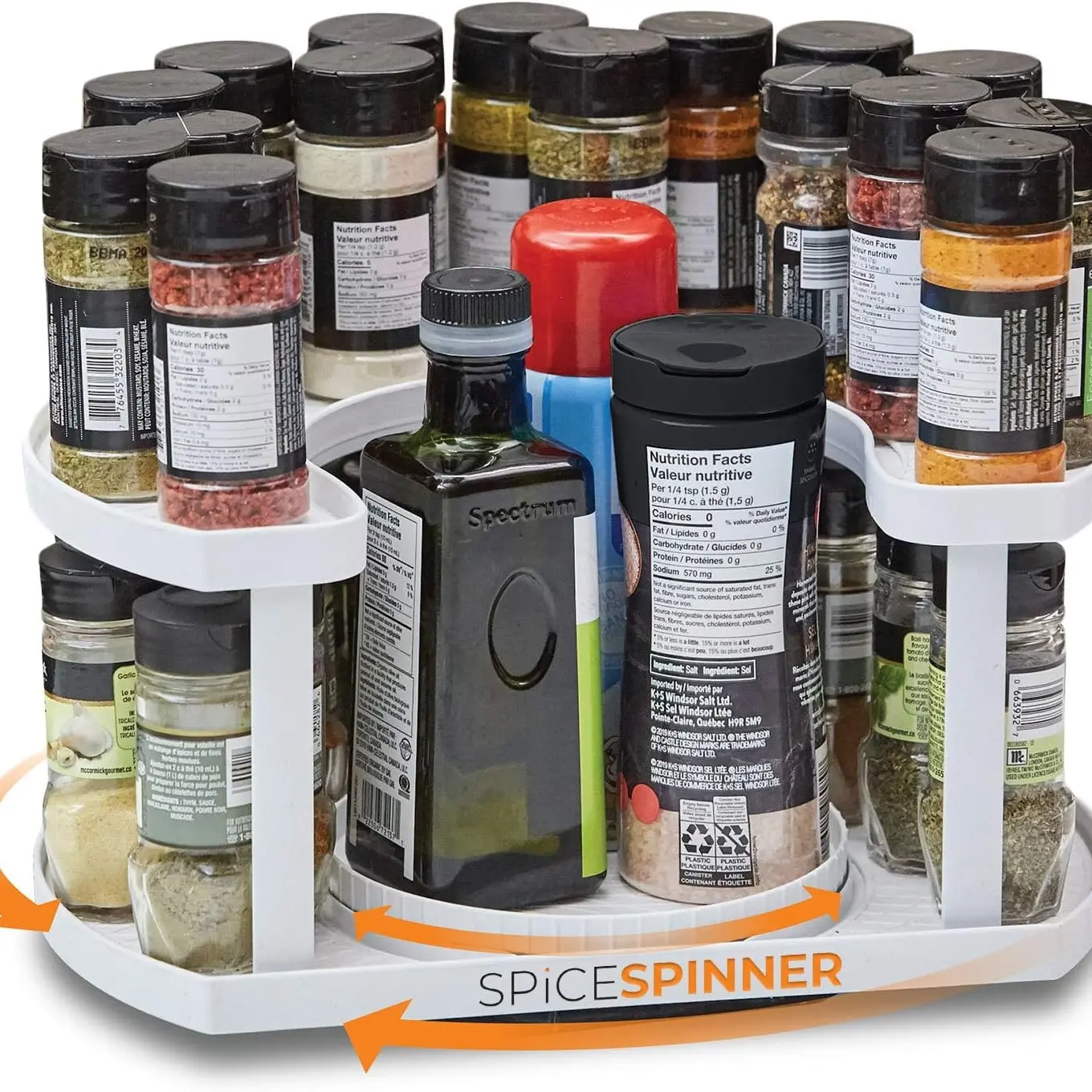 DUAL SPIN LAZY SUSAN – Built-in turntables keep all your spices at your fingertips with a simple spin. Makes everything visible and provides storage for taller items. Reclaim unused space in your cabinets and keep everything in view!