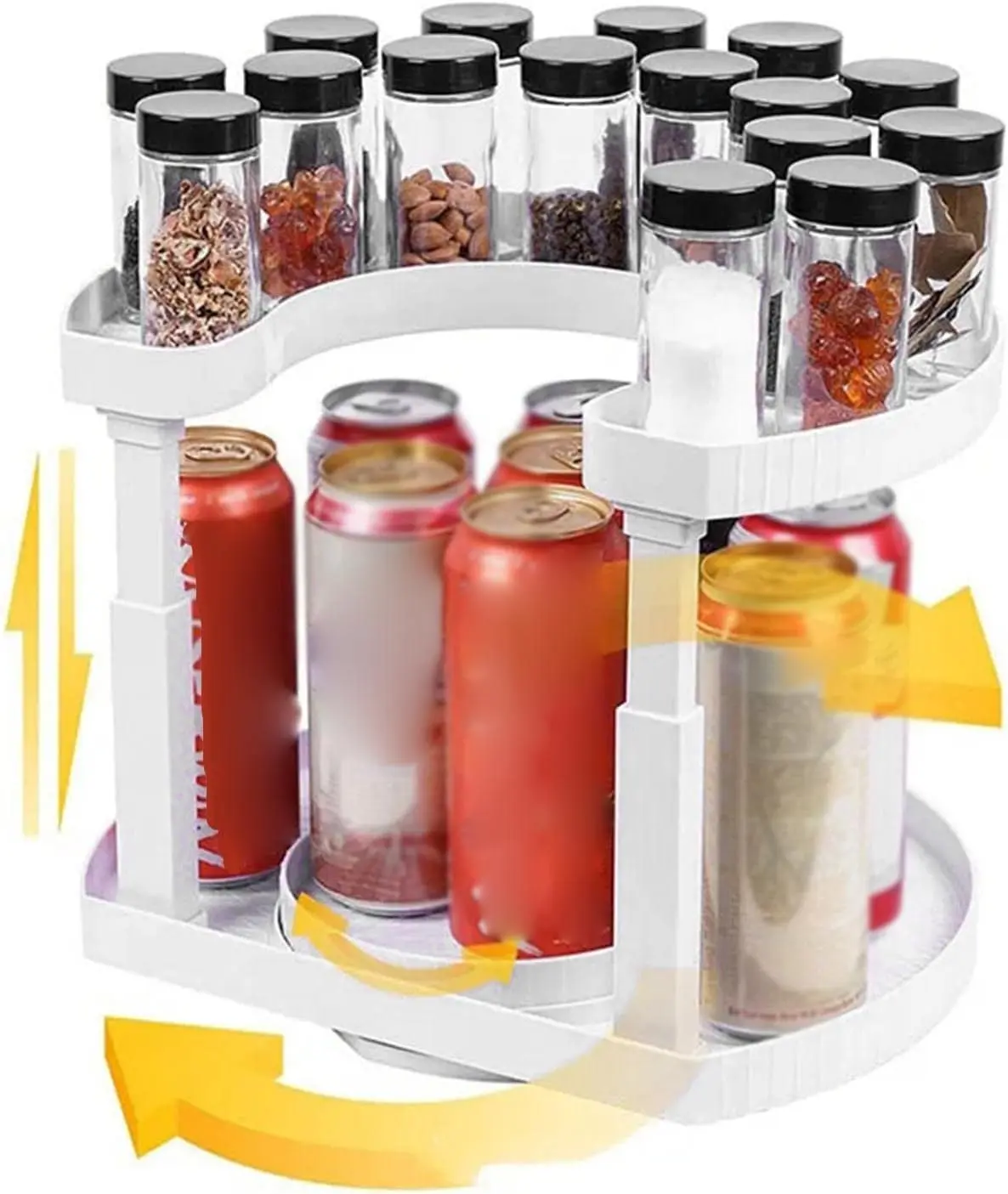 360 ° rotating spice rack seasoning storage rack is a versatile storage rack that can hold various small items such as spices, seasonings, beauty tools, etc. It is neat and space saving