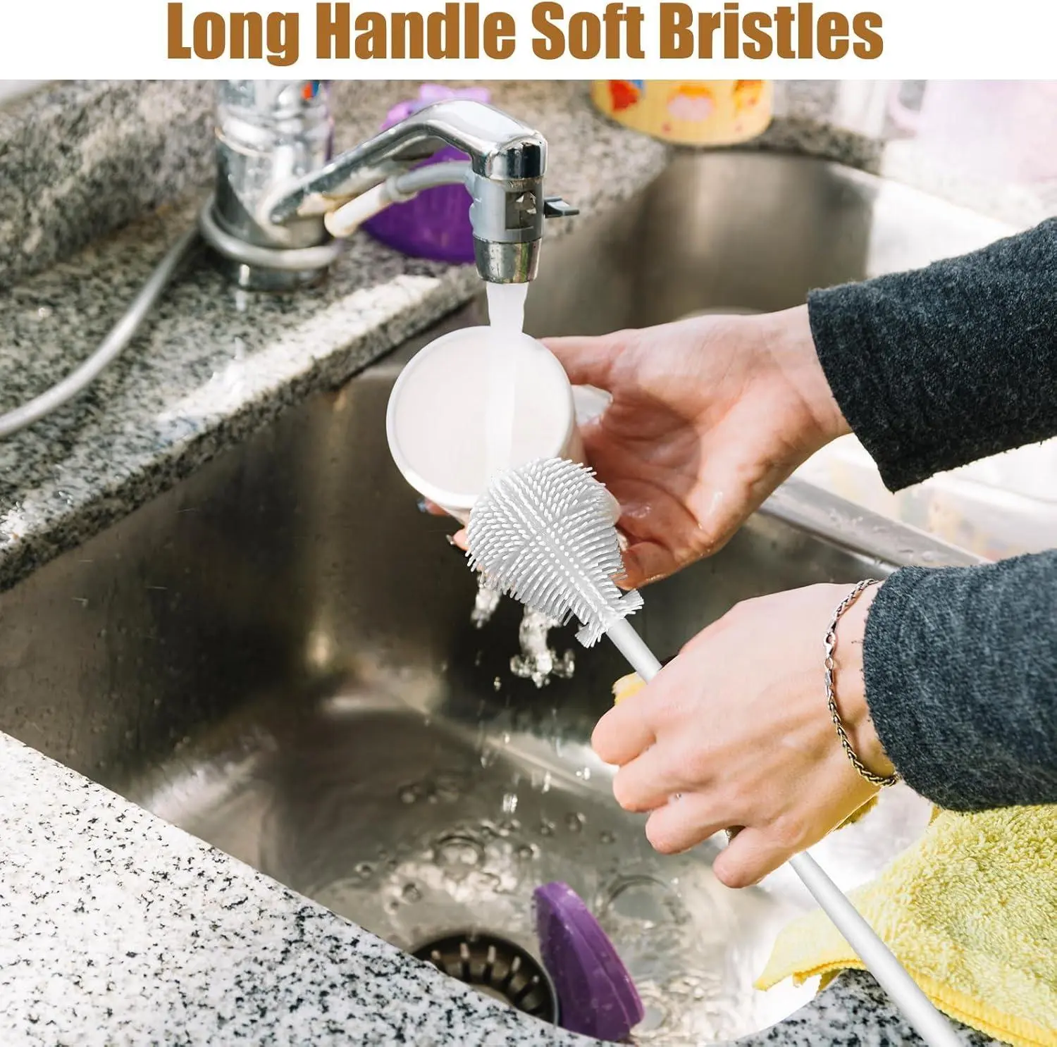 ·Long Handle Design – Provides a comfortable grip and makes it easy to clean deep bottles and narrow containers.