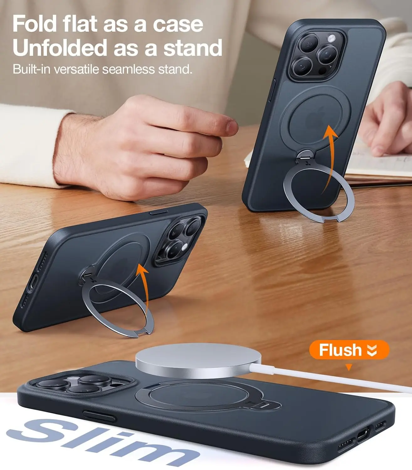 Ever struggled to find the perfect angle for your phone when watching videos or taking selfies? This upgraded 360° Spin Magnetic Stand Phone Case has you covered with all-around rotation and up to 1500° tilt support. Whether you want to prop your phone vertically or horizontally, this stand adjusts effortlessly. Plus, it doubles as a handy ring holder, making one-finger handling a breeze when your hands are full.