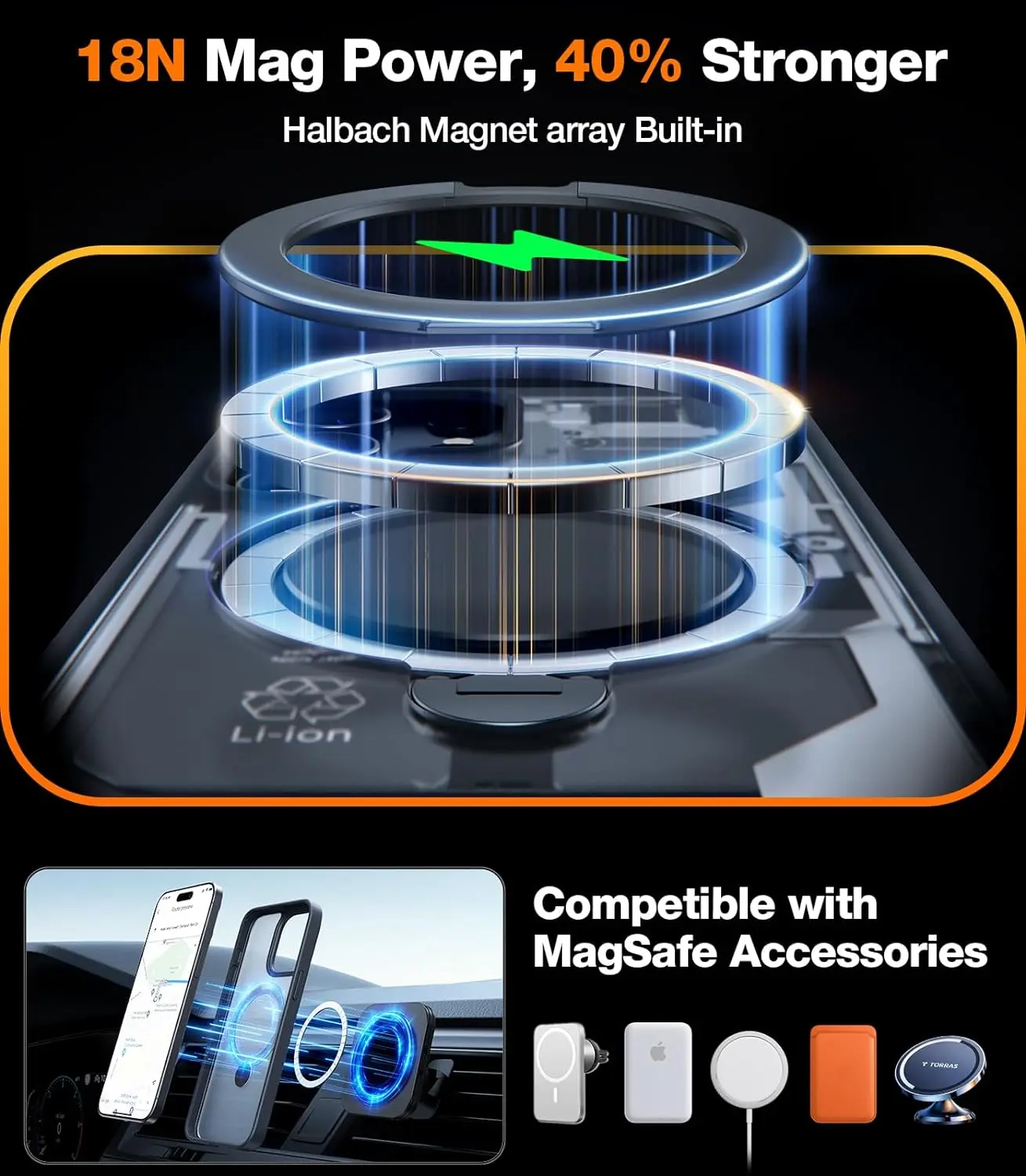 Powered by strong N52 magnets, this case supports MagSafe and works seamlessly with all MagSafe accessories and Qi-certified wireless chargers—no fumbling with cables. The slim, translucent matte TPU design resists fingerprints, oil, and dust while showing off your phone's logo with a sleek, minimalist look.