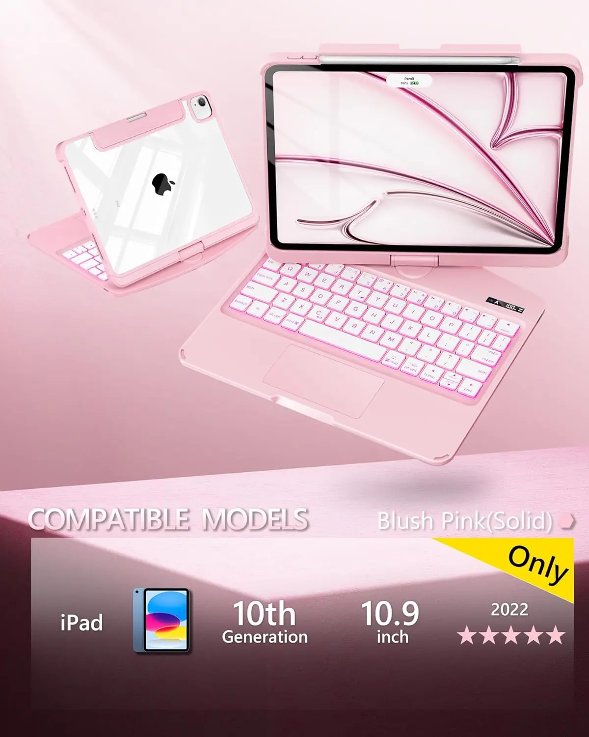 ·Transform your iPad into a Mac in an instant: Simply connect your iPad via Bluetooth and use it as a laptop. The keyboard automatically powers on when opened, and the touchpad provides a silky-smooth experience. The keyboard has no lag or stutter, with excellent key bounce-back,
