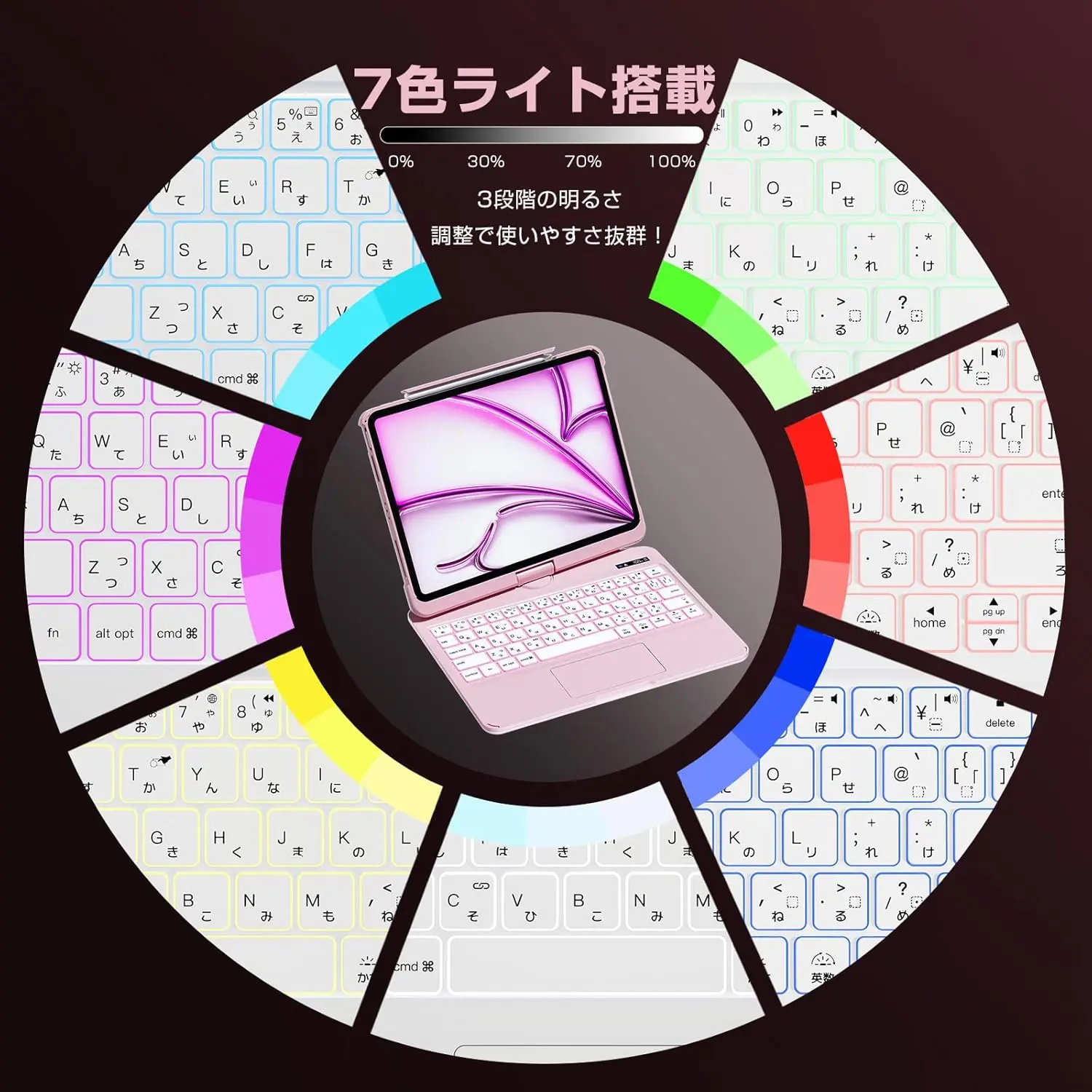 ·Backlit design: The entire keyboard features a backlit design with three levels of brightness adjustment and seven-color backlighting. Working late or watching shows at night, there's no need to type in the dark.