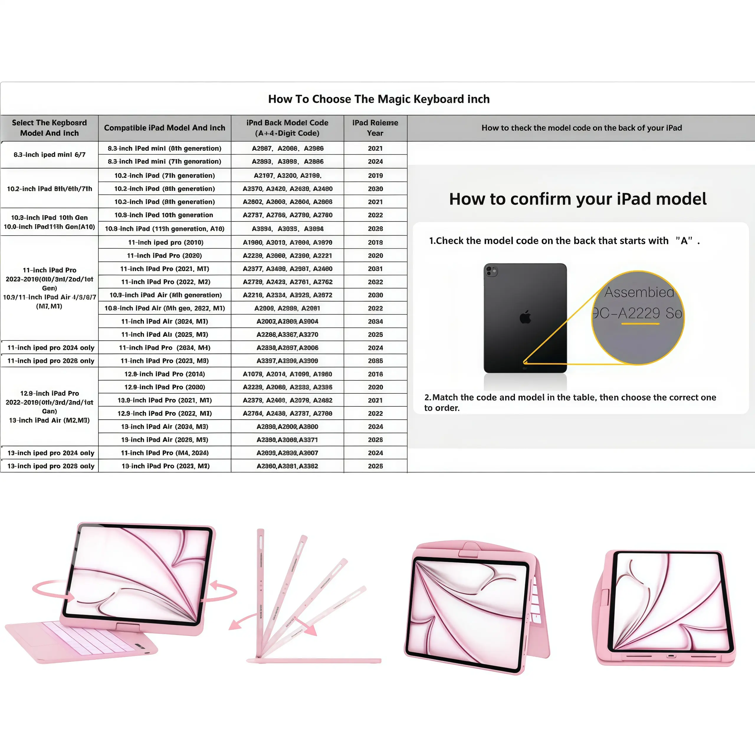·iPad models released from 2018 to 2025.Please check the model number starting with “A+4-digit code” on the back of your iPad before purchase.(If you’re unsure, please contact our store customer service or scroll to the bottom of the product details to view the size guide.)