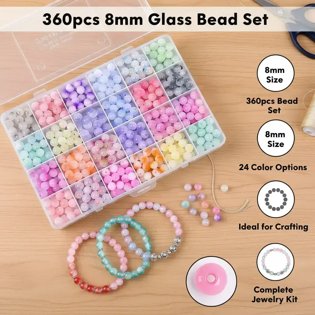 【Quantity & Size】: Each kit contains 480 pieces of glass beads, giving you plenty of options to experiment with. The beads are 8mm in size, making them ideal for various jewelry-making projects, such as bracelets, necklaces, and earrings.