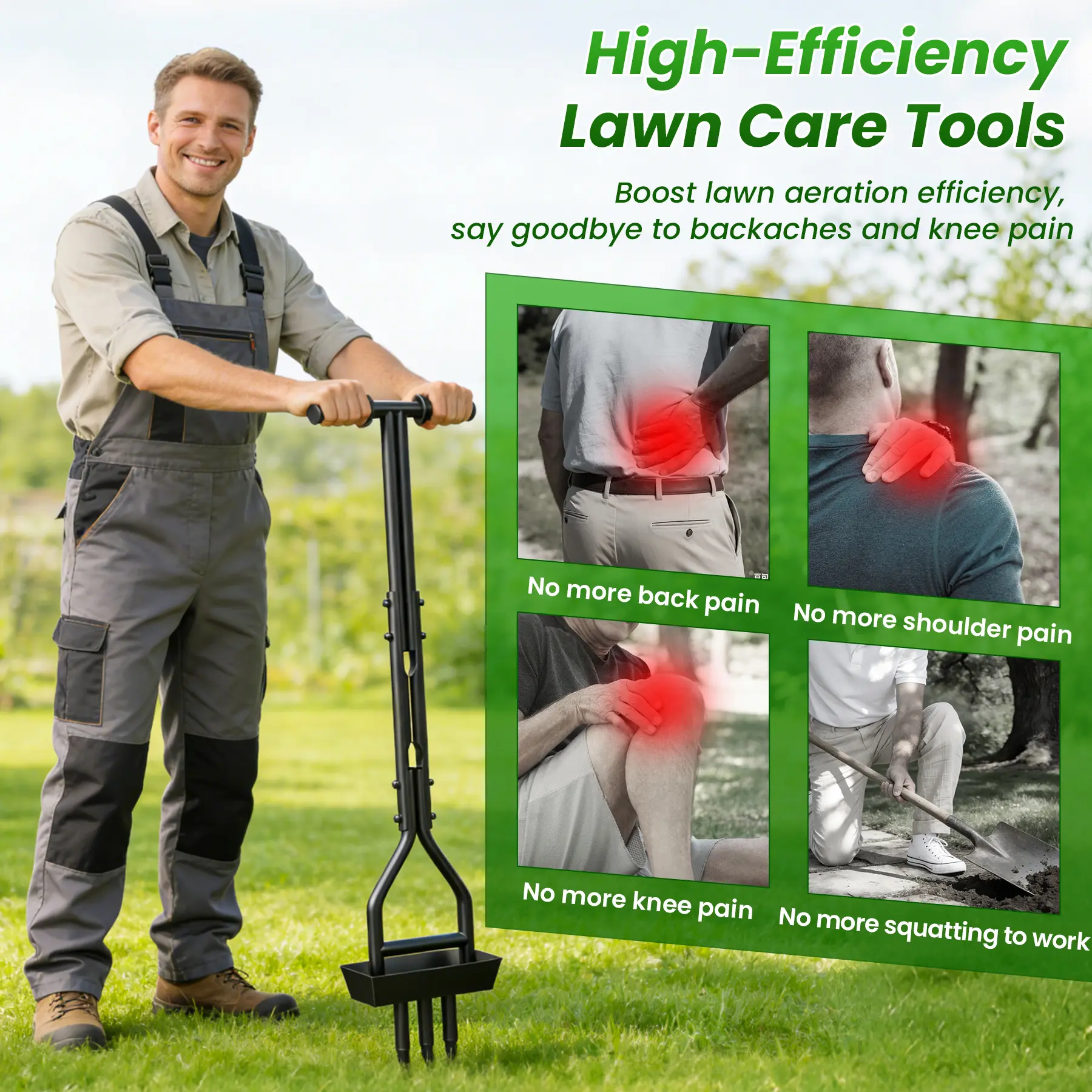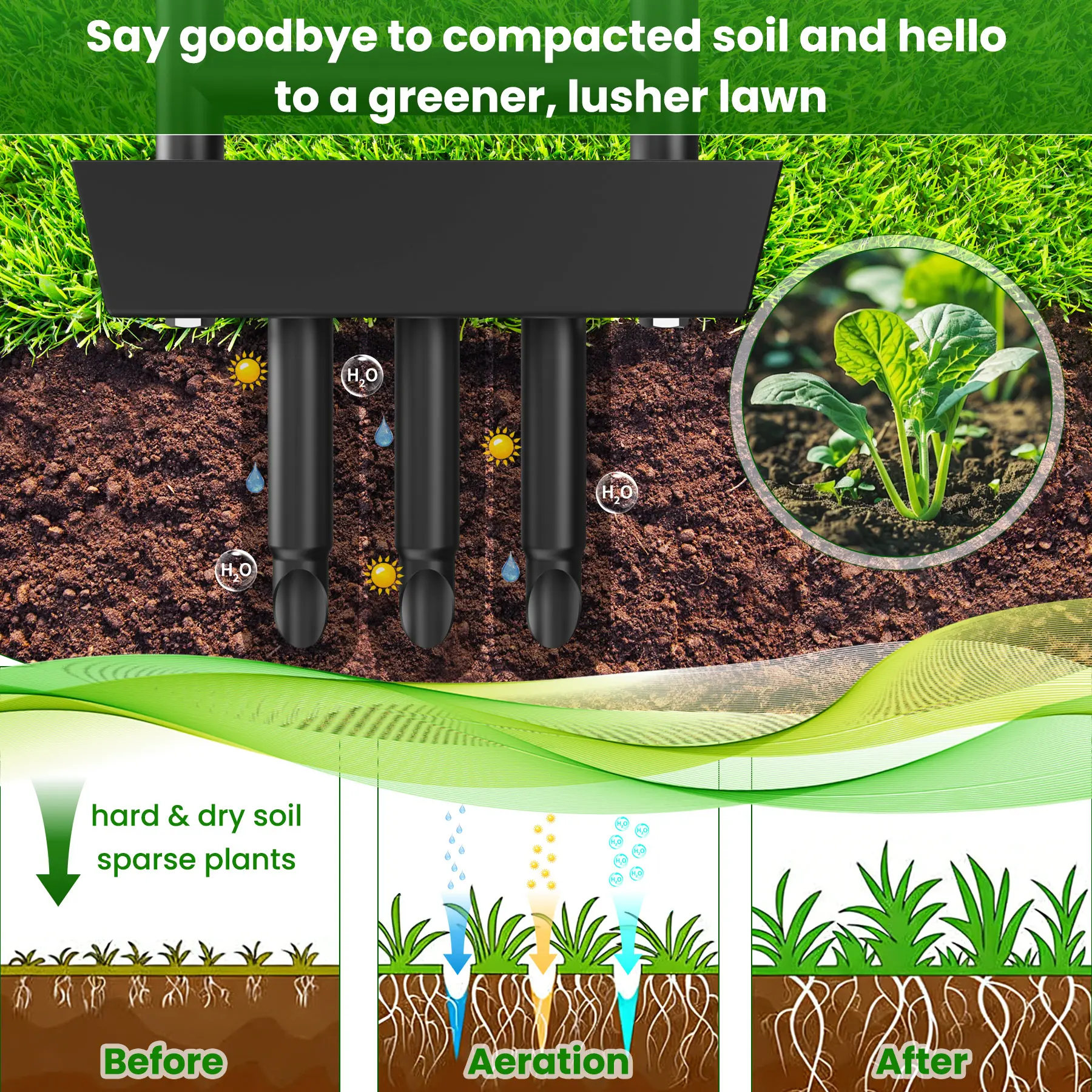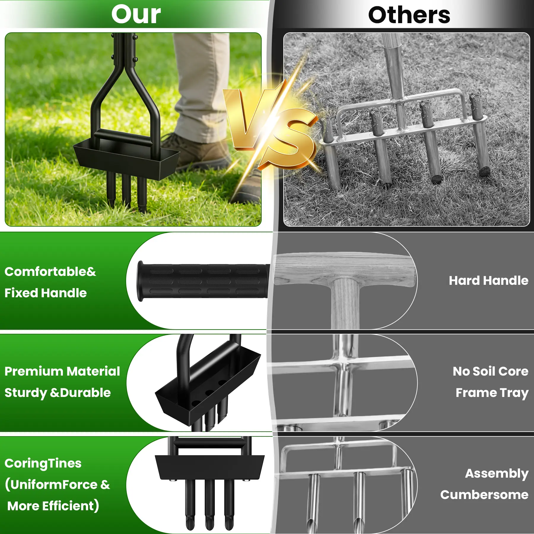 5. 38 Inch Lawn Coring Aerator with Soil Core Tray - Manual Garden Plug Aerator, Includes Cleaning Tool for Compacted Soil & Lawn Care