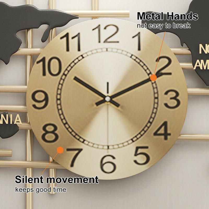 5. 38" Modern Metal Large Map Wall Clock Decor Creative Silent Clocks Art for Living Room