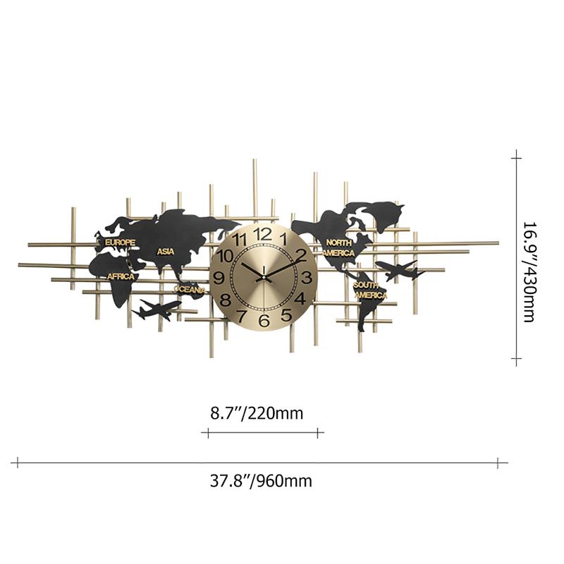 38" Modern Metal Large Map Wall Clock Decor Creative Silent Clocks Art for Living Room