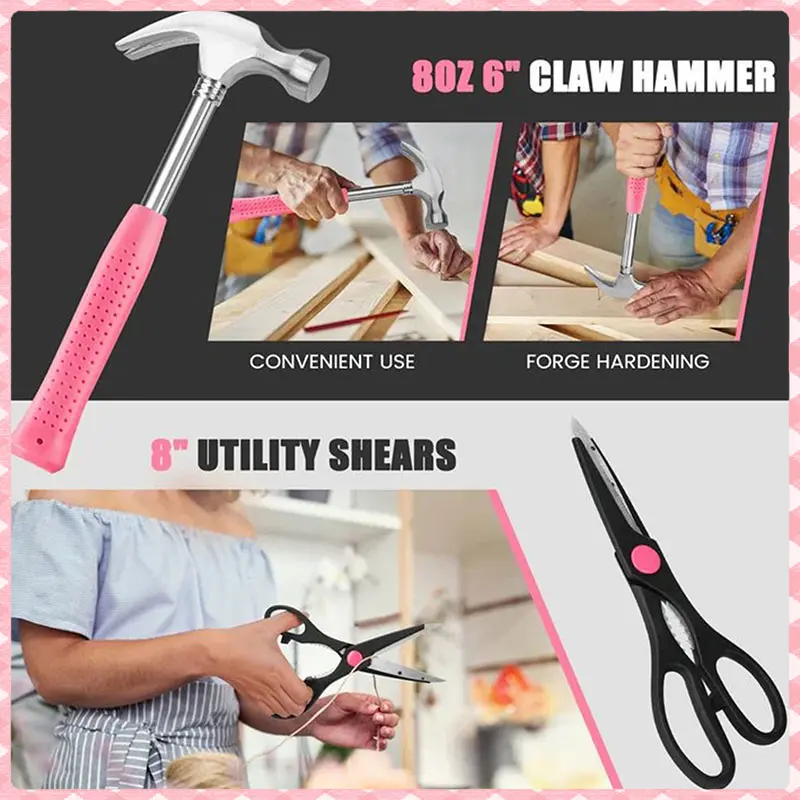 This compact and complete tool box set is perfect for any handy woman looking to tackle those easily overlooked jobs around the household and workplace. Every lady can take on maintenance, emergency fixes, basic repairs, and weekend projects. An all-purpose set easily carried in its tool box case.