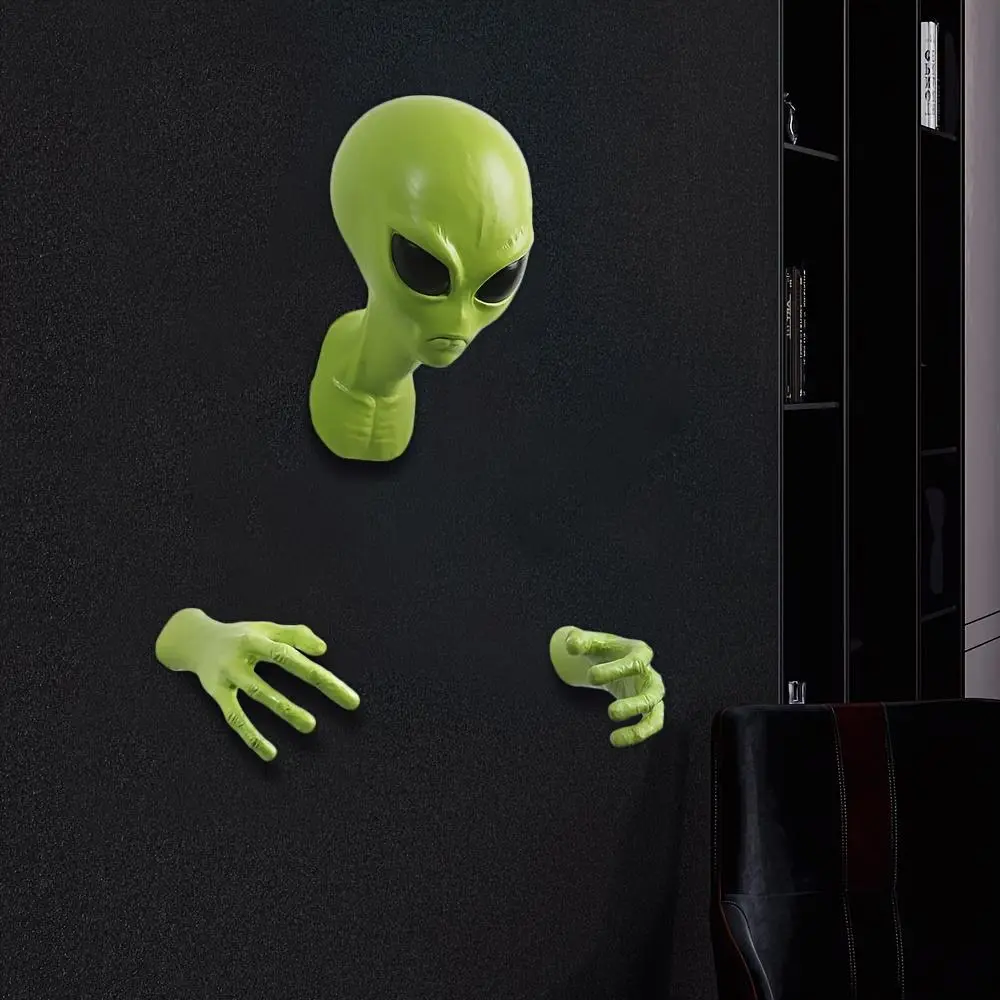 3D Alien Head & Hand Design Wall Mounted Decor Creative Wall Hanging Ornament, Wall Art Decor for Home Living Room Bedroom, Poster, Wall Art Decoration