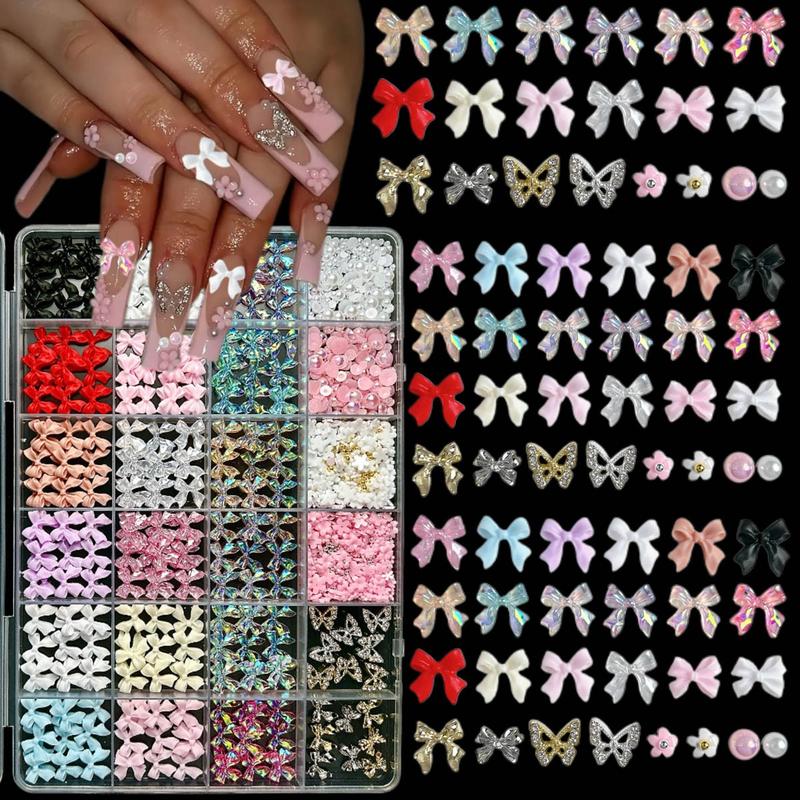 4. 1Box 3D Classic Bowknots Resin Nail Charms Sold Color Ribbon Bow Light Luxury Hollowed Butterfly Alloy Nail Art Decorations DIY Manicure Supplies Nail Art Design