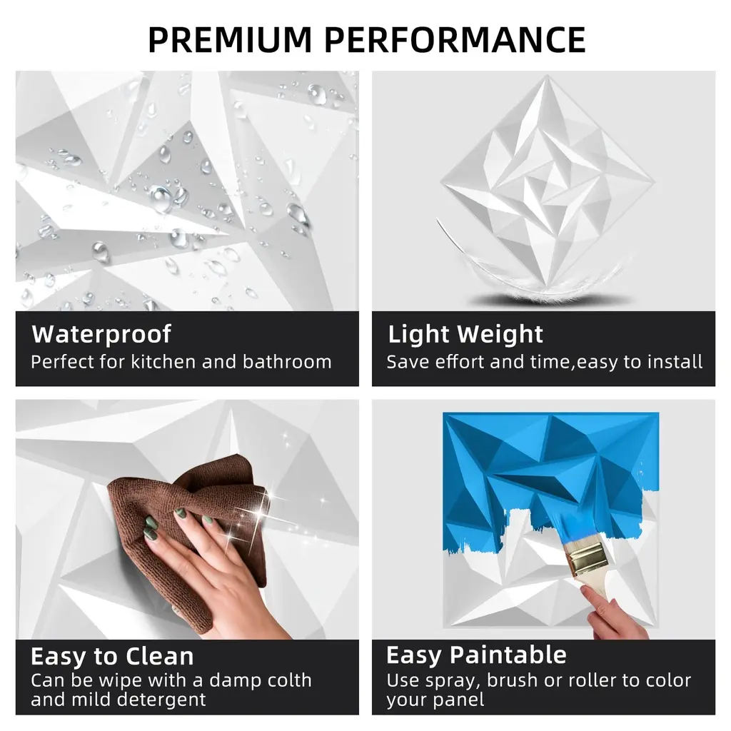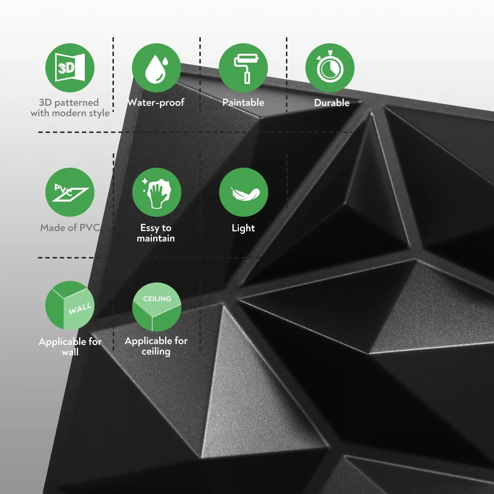 3D Diamond Pattern Wall Panel for Indoor Wall Decoration, Durable PVC Material, Perfect for Home Living Room & Bedroom Walls, Indoor Use, Wallboard Panel