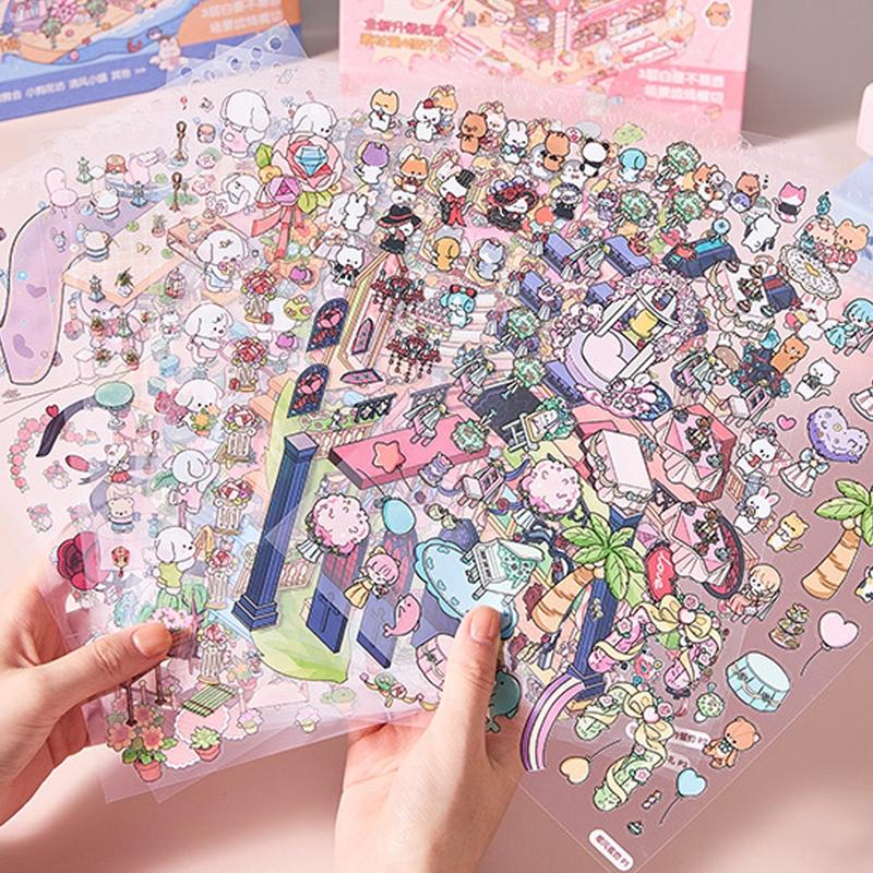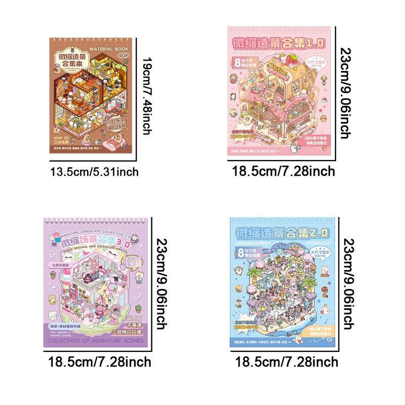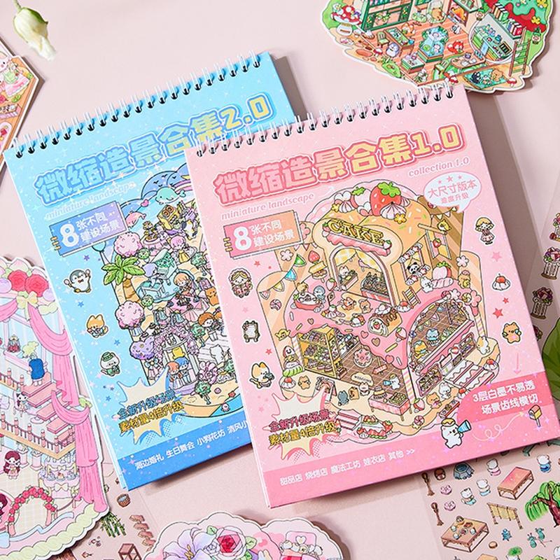 Christmas Gift,minature house kit,3D DIY Miniature World Set, Scene Card Paper, Stickers, and Background Cards, Decorative Sticker Album, Gift Packaging Set, 3D Cartoon House DIY Landscape Decoration Sticker Book, Sticker Packs