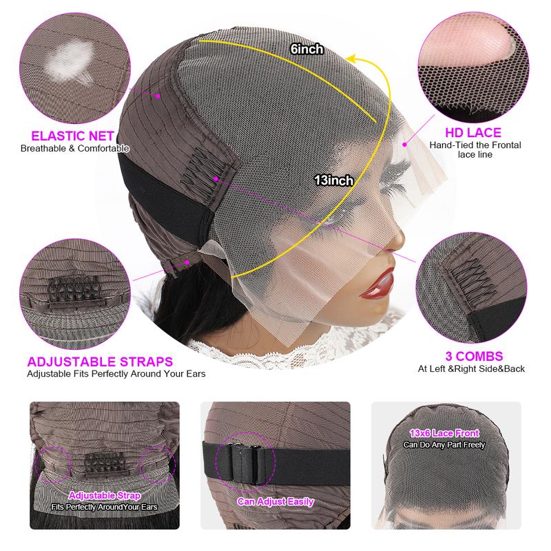 Hair Material: Remy Human Hair Wigs, Deep Wave Hair, Can Be Dyed and Bleached Easily.