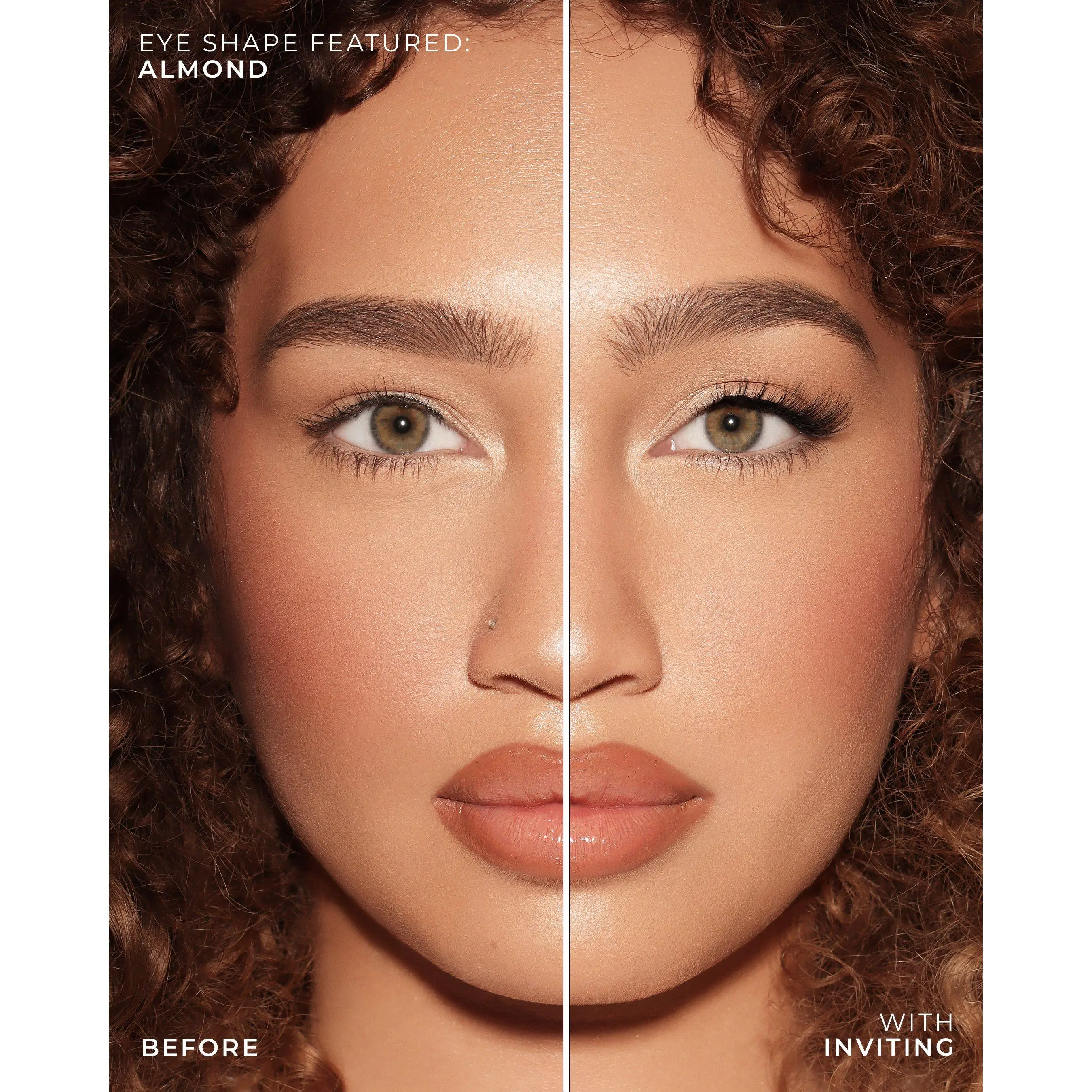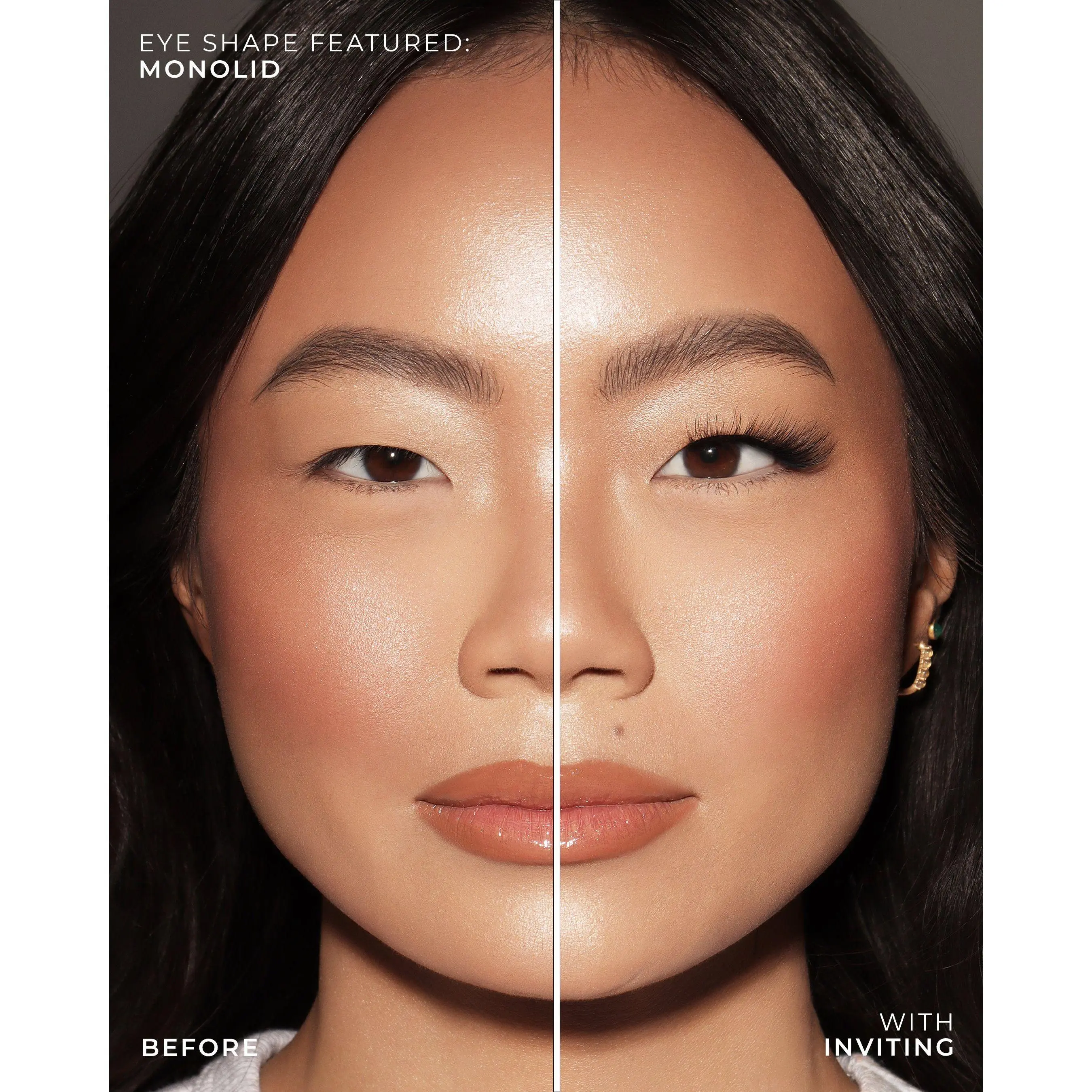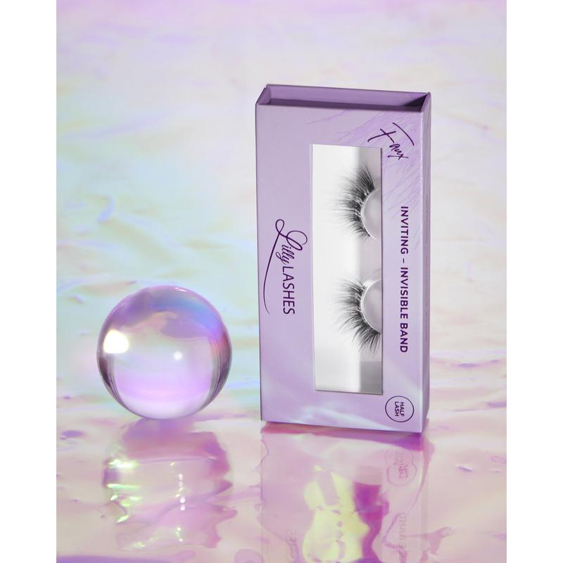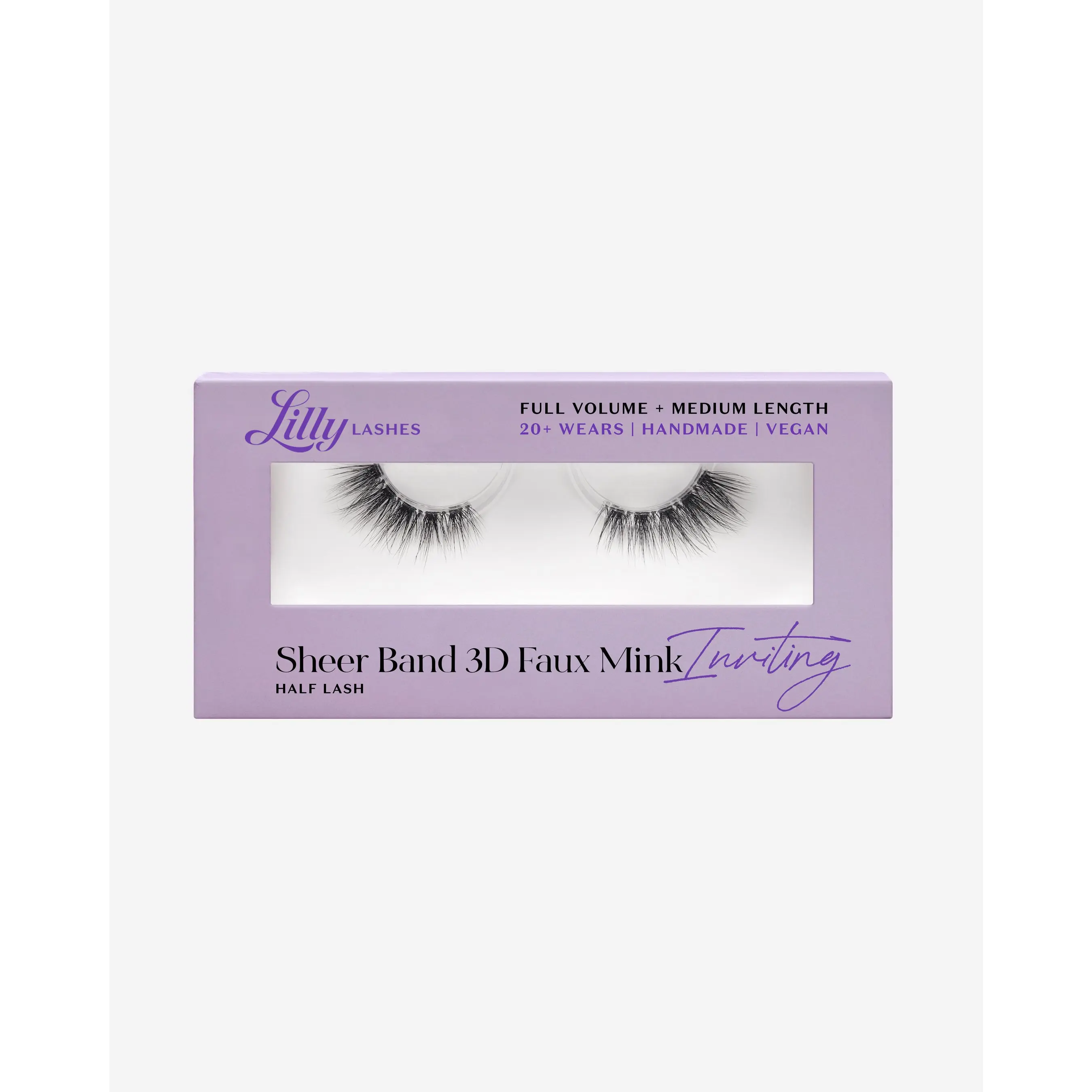 It's time to play up your charm in Inviting! This wispy half lash is a perfect match for any eye shape. With an invisible band, this lash seamlessly blends in with your natural lashes, adding an extra flirty accent to those outer corners.